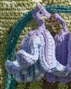 The flowers use florists wire and wadding to create a 3-D effect and are appliquéd to the background. Nearly all of the flower parts are worked in dc (US-sc) and, provided you take the instructions step by step, are not complicated.