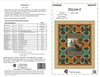 The 52” x 64” cover quilt has a 24” panel used for the large center square and the 10 small squares above and below it, with a print for the corner blocks. A large scale print would also work in place of a panel.