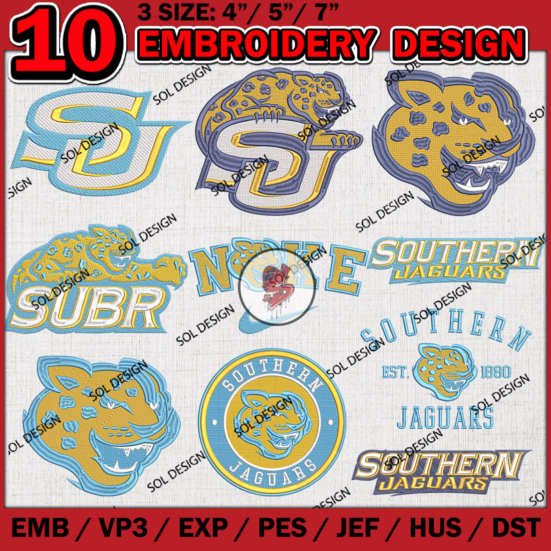 10 Southern Jaguars Bundle Embroidery Files, College Football Embroidery Designs, NCAA Southern Jaguars Machine embroidery Design Bundle, Ncaa Southern Logo bundle, Digital Download