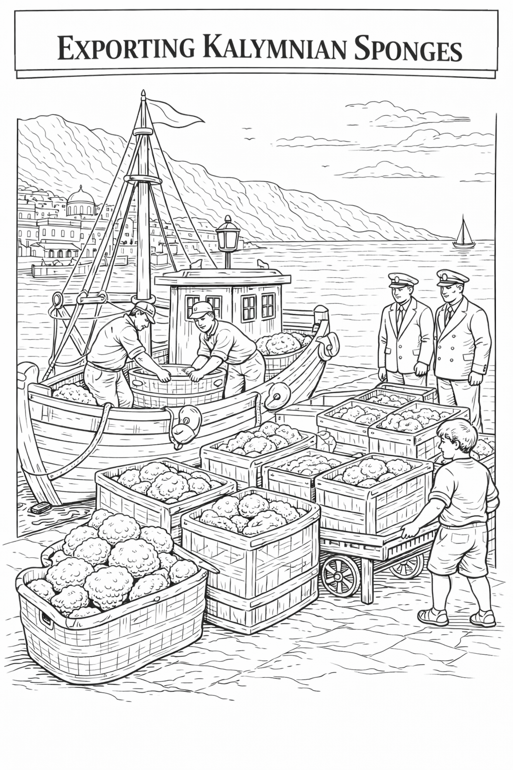 Kalymnos and sponge divers, 104 designs, coloring ebook, digital printable product, instantly download. 🇬🇷 Η Ιστορία των Σφουγγαράδων της Καλύμνου