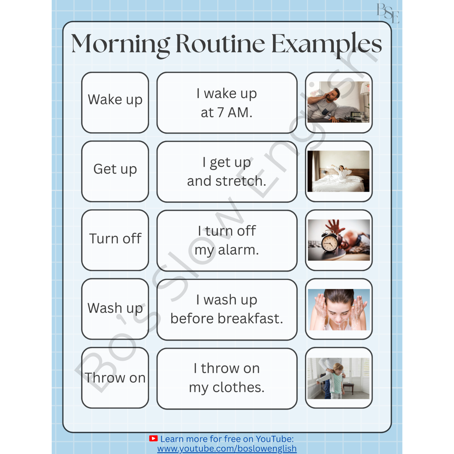Want to speak more natural, everyday English? This free sample includes the full Morning Routine section from my complete workbook, Phrasal Verbs for Daily Activities.