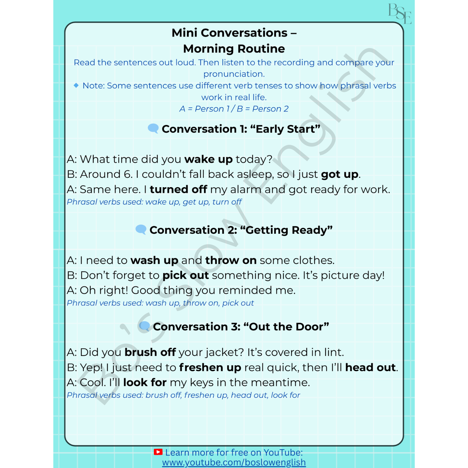 FREE Sample – Phrasal Verbs for Daily Activities (Bo’s Slow English Workbook Preview)