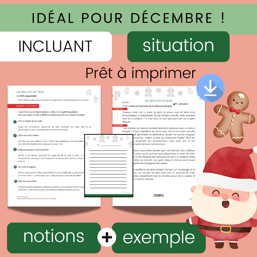 À partir de la recette de Mère Noël et de la tradition des biscuits de Noël, ils devront se positionner, défendre leur point de vue et convaincre leur lecteur dans une lettre d’opinion structurée.