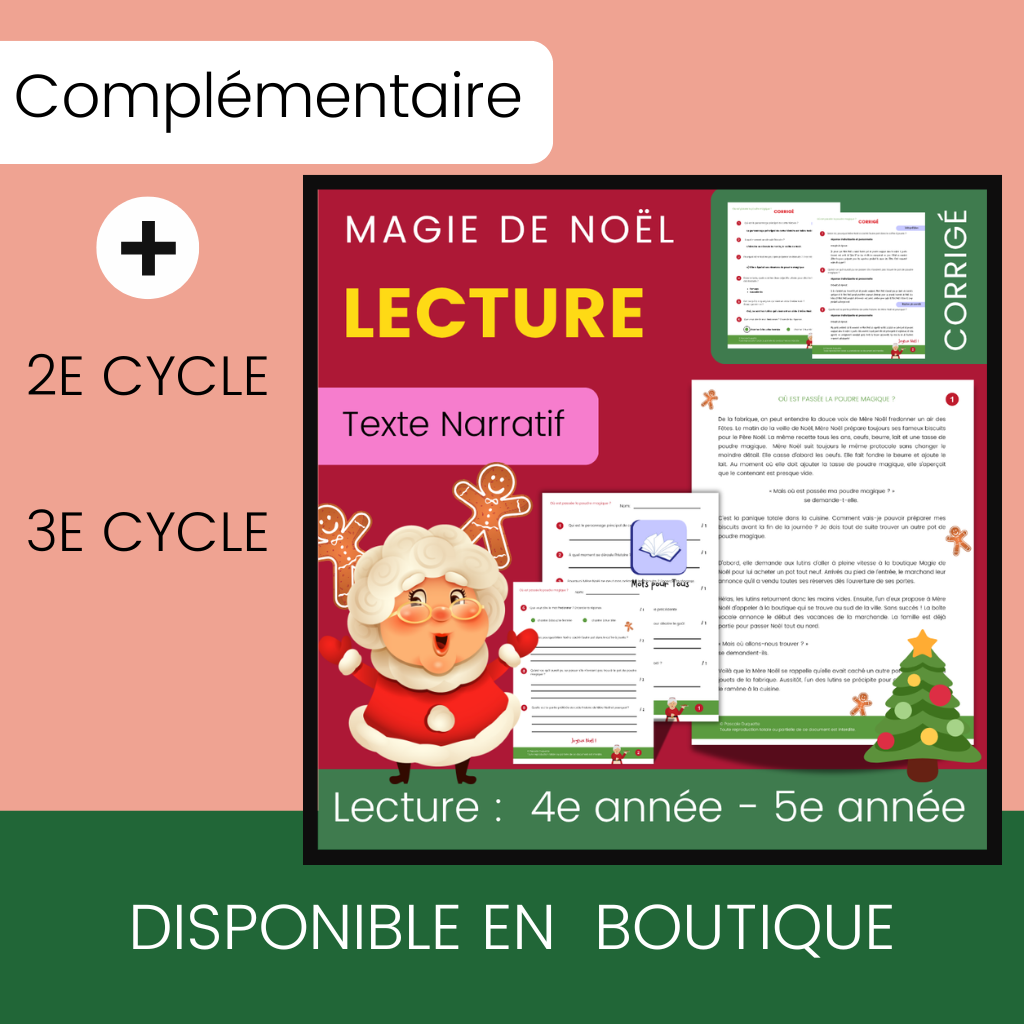 - la compréhension de lecture « Où est passée la poudre magique ? » (4e–5e année)