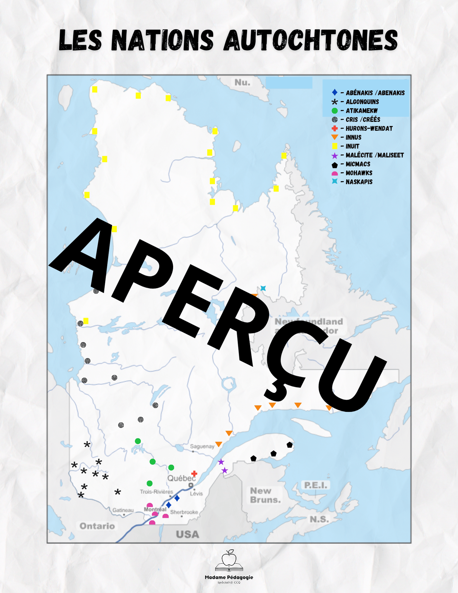 Affiche des emplacements des différentes nations autochtones à travers le Québec.