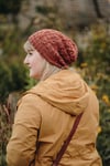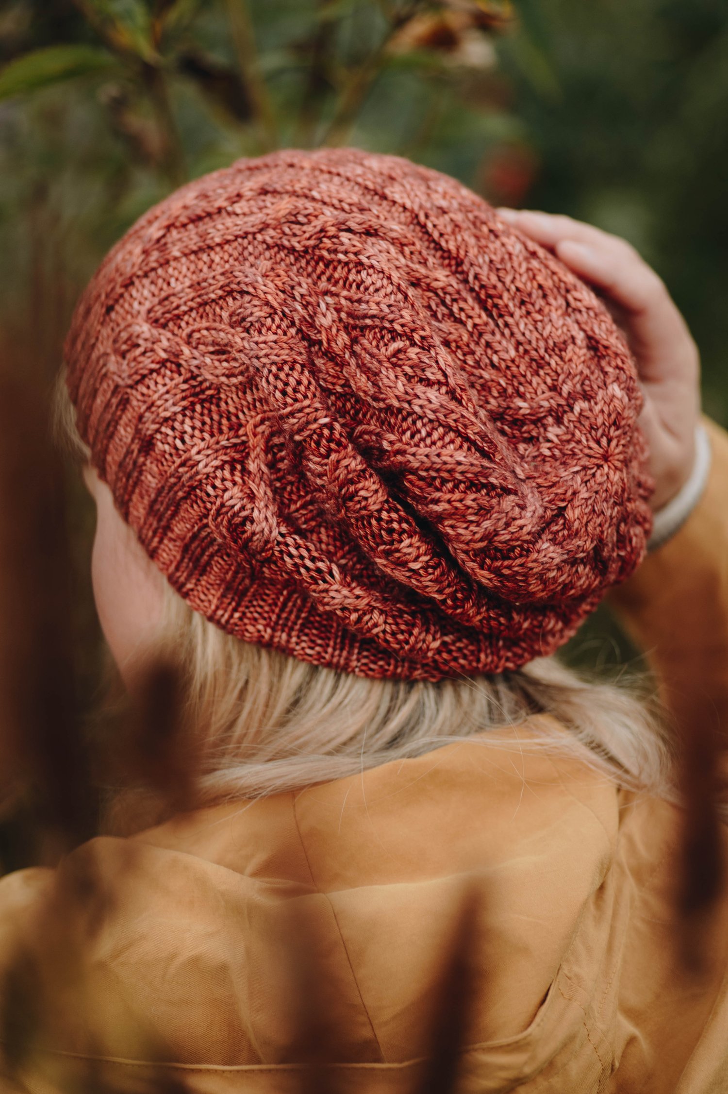 1 skein of Cecily Grove Yarns Luxe DK: 75% merino, 25% silk. 225 m/246 yards per 100 grams. Show in colorway Rust.