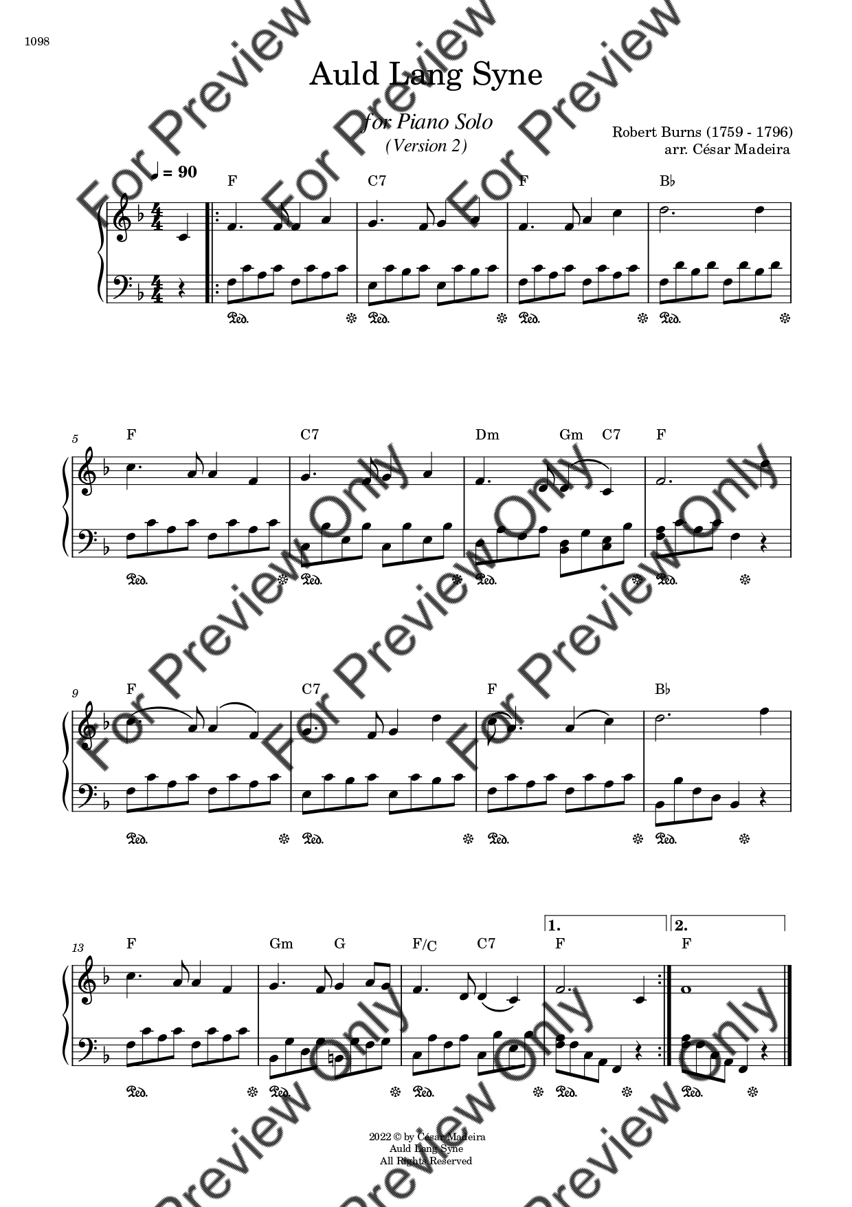 Auld Lang Syne by Robert Burns. Arrangement for Piano Solo. With Full Score. Have fun!