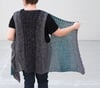 Vest is worked sideways (vertically), from center Back to Right Front, yarn is rejoined at center Back and worked to Left Front.