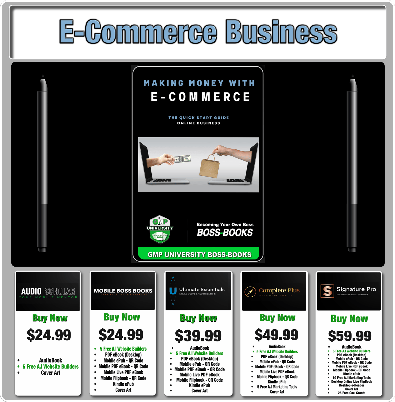 E-Commerce Business - Ultimate Essentials - PDF / AudioBook / 5 Free A.I Website Builders