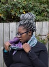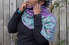 It can be knit using a single colour in any weight yarn, or 2 different colours, the sample is knit using 2x 100g of DK for a total of 490m. An additional reverse and main pattern section is added beyond what is written, following the instructions on how to keep expanding the pattern to continue until you are satisfied with length and width.
