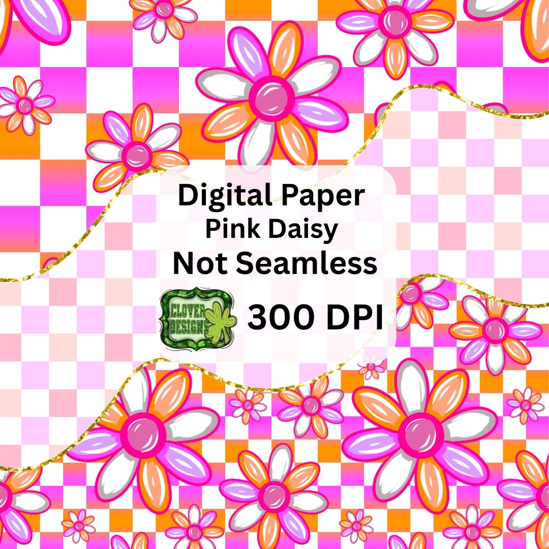Pink Daisy Checkered Digital Paper Png, Instant download