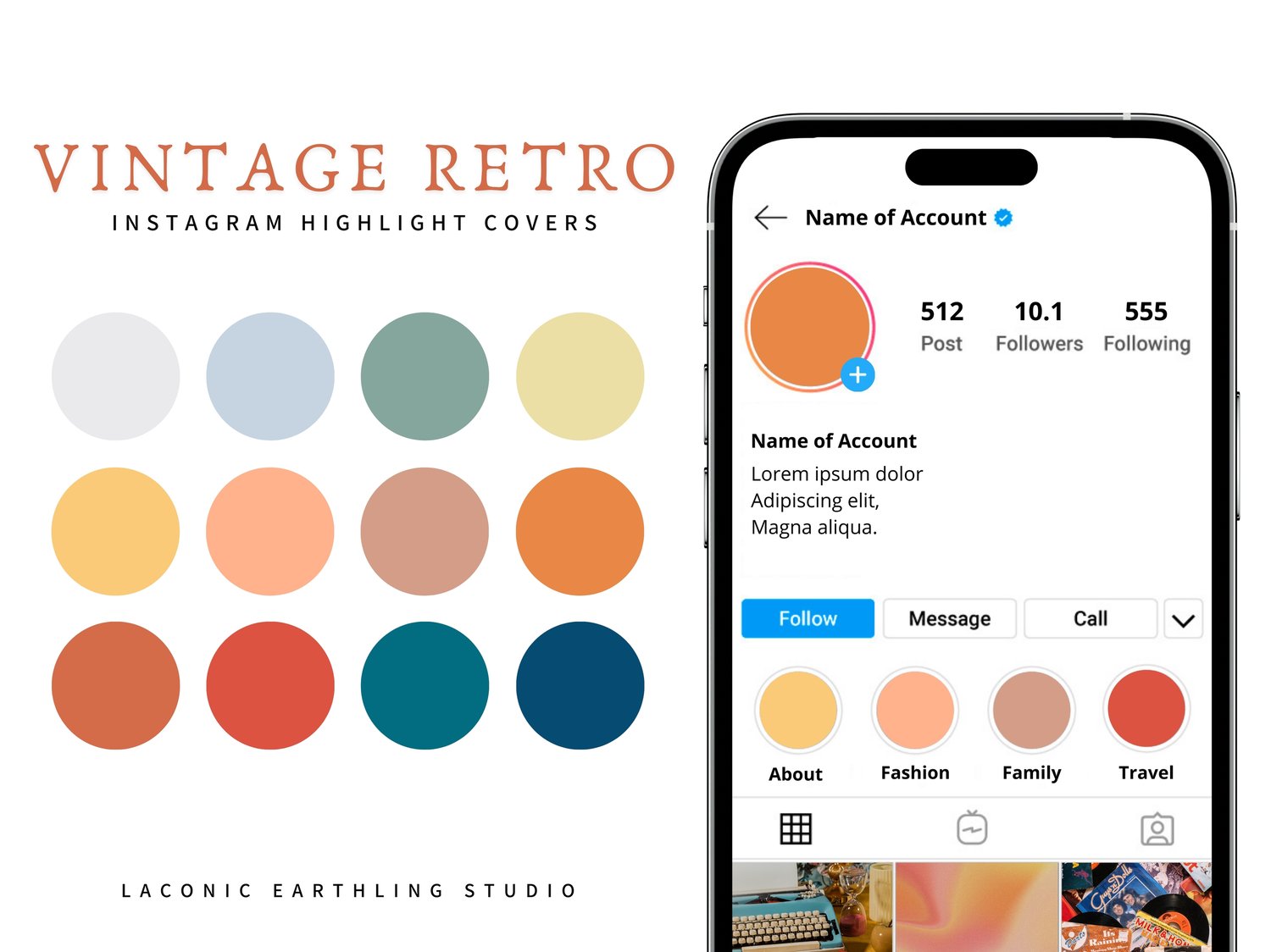 Social Media Instagram Vintage Retro Highlight Covers | Neutral Story Instagram Highlights | Editable Canva Covers | Y2k, Retro 70's, 80's