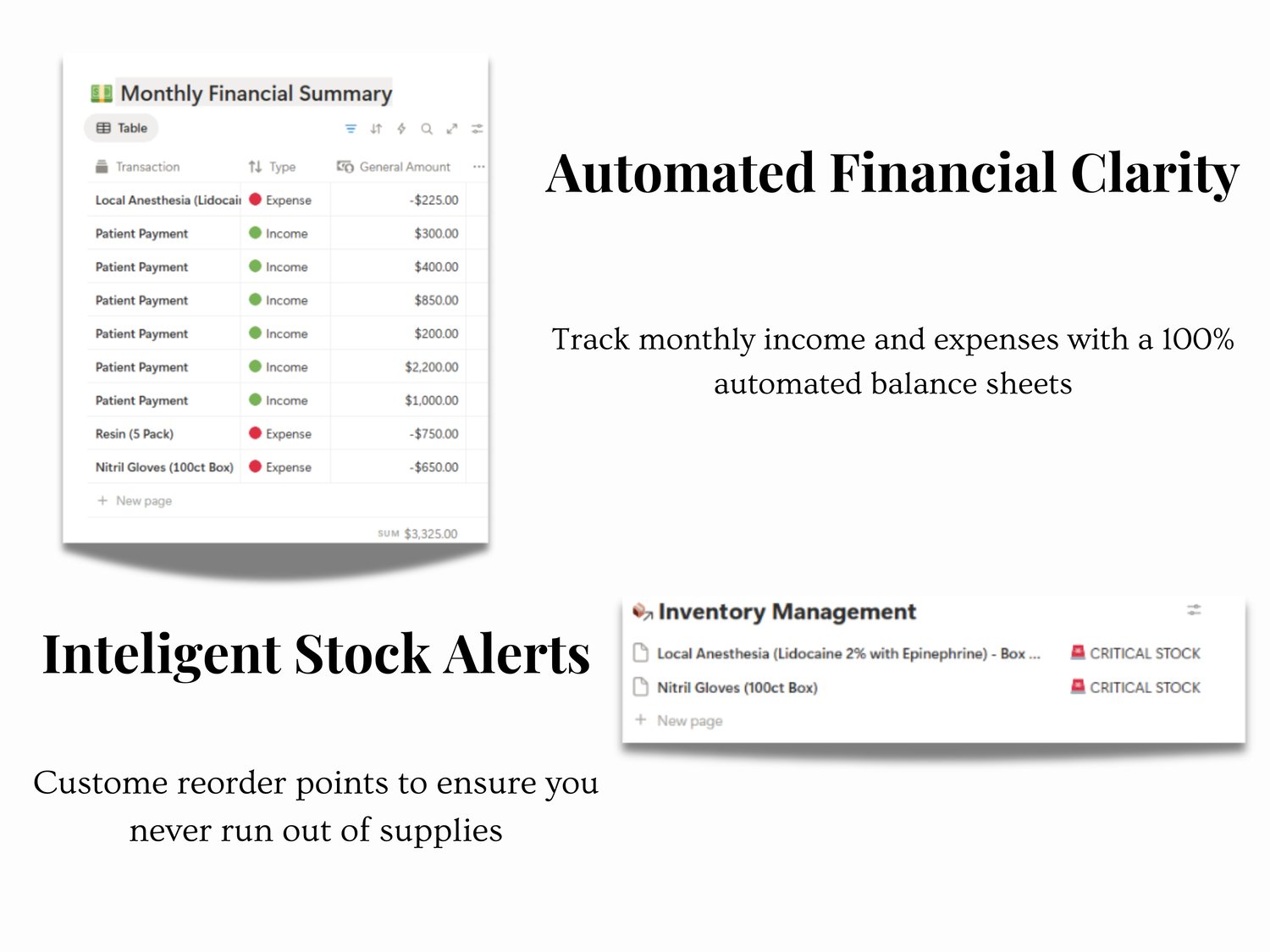 The Dental Clinic Management System is a professional, all-in-one Notion template designed to centralize and automate every operational aspect of your dental practice. This template isn't just a collection of databases—it's a fully integrated, automated management tool that guarantees financial accuracy and protects your data.