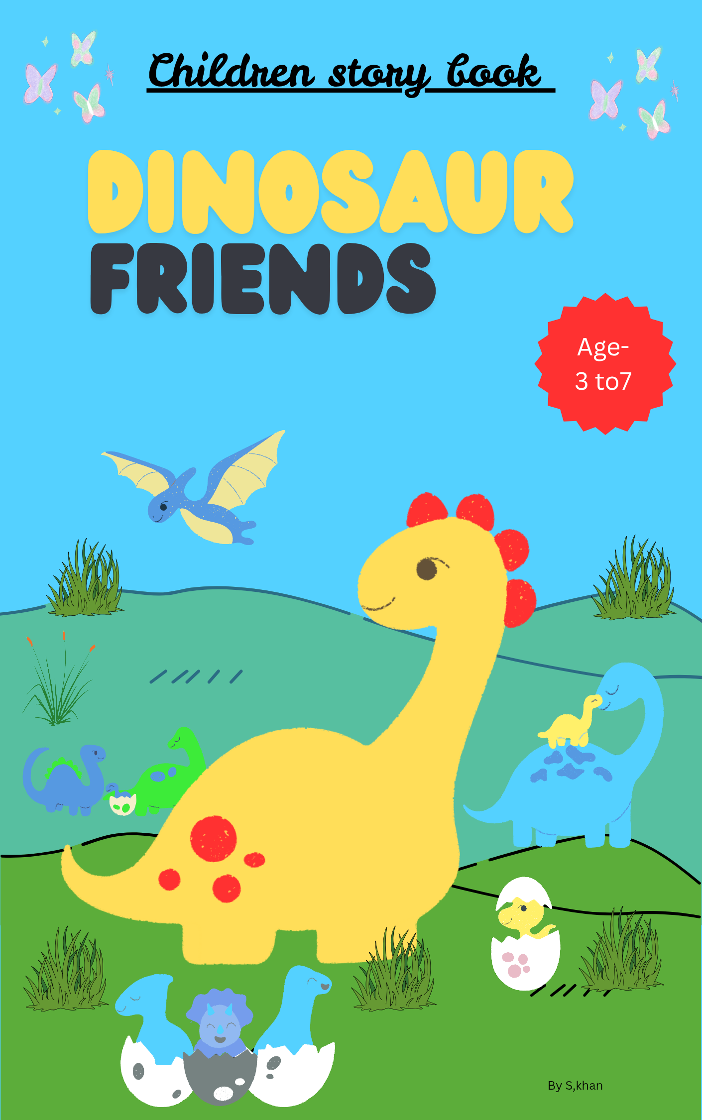 ✨ Fun-filled days with dinosaur friends who love to laugh, learn, and share every adventure together. Download Children book cover template. ✨🦕