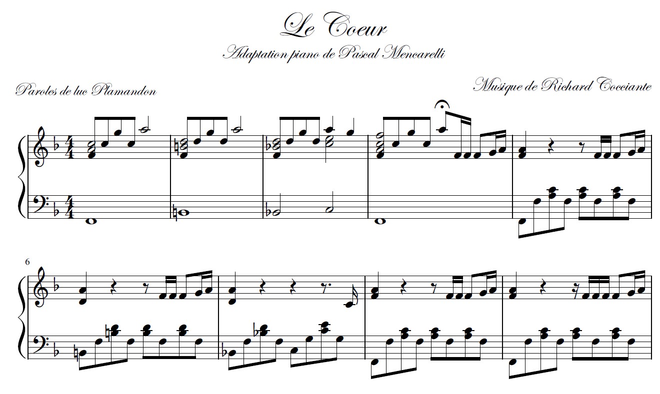 Richard Cocciante - le Coeur - Partition Piano Solo