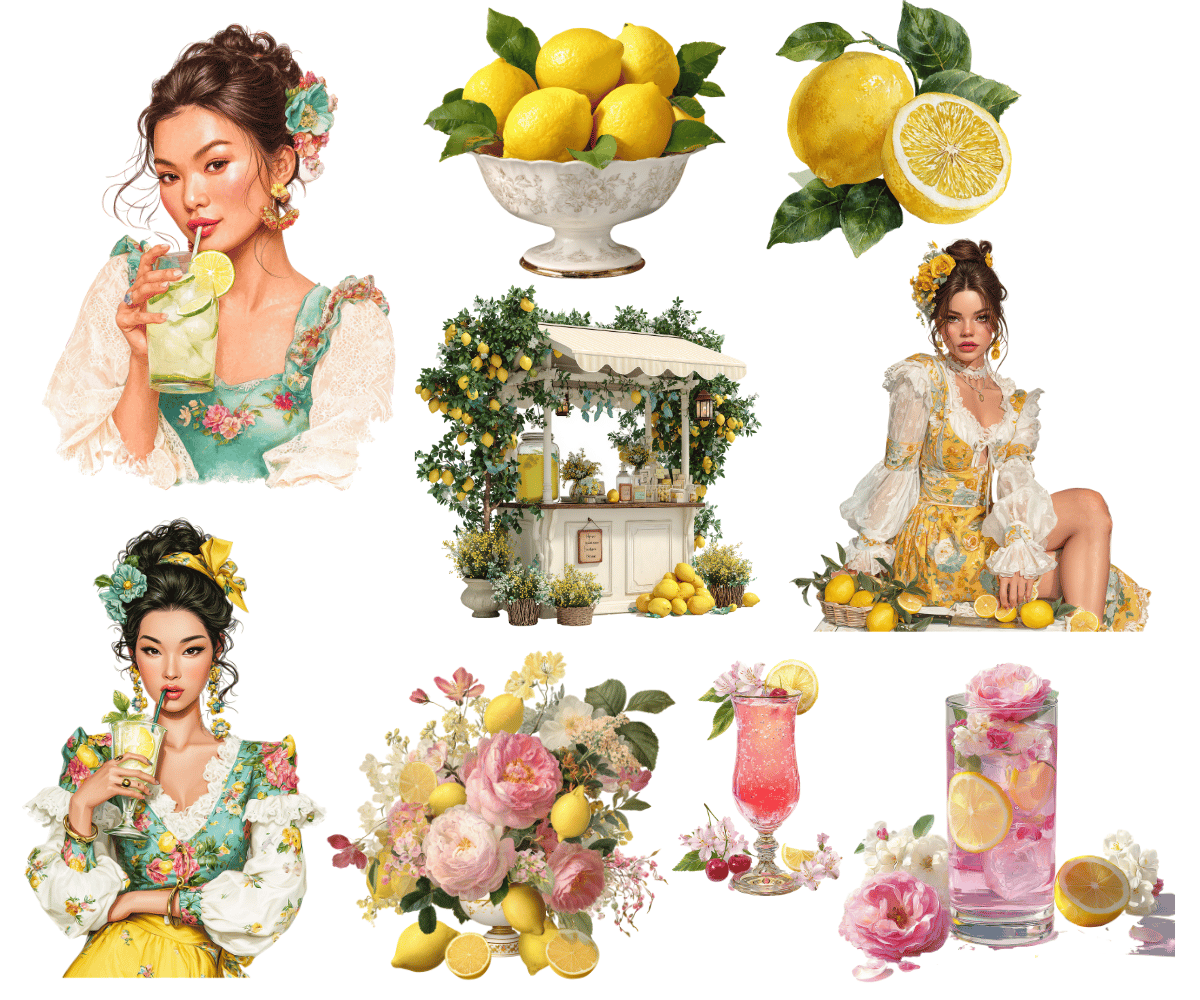 Elevate your crafting projects with our Lemonade Afternoon Clipart and Backgrounds. Perfect for instant download and sublimation design. Clipart includes elegantly styled elements suitable for crafting projects in gorgeous rich tones evocative of the zesty yellow aesthetic. Ideal for digital art, printable clipart, and crafting, this set is a must-have for creating charming arts and crafts designs. In fact, cut them out and place them on your planners to make for an extra special gift for an organizer.