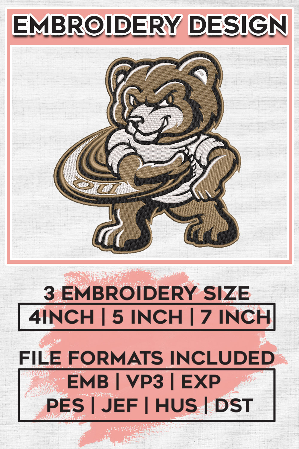 NCAA Grizzlies Mascot Embroidery Design, NCAA Oakland Golden Grizzlies Machine Embroidery Designs, NCAA Logo embroidery designs, Ncaa Grizzlies Logo, Digital Download