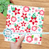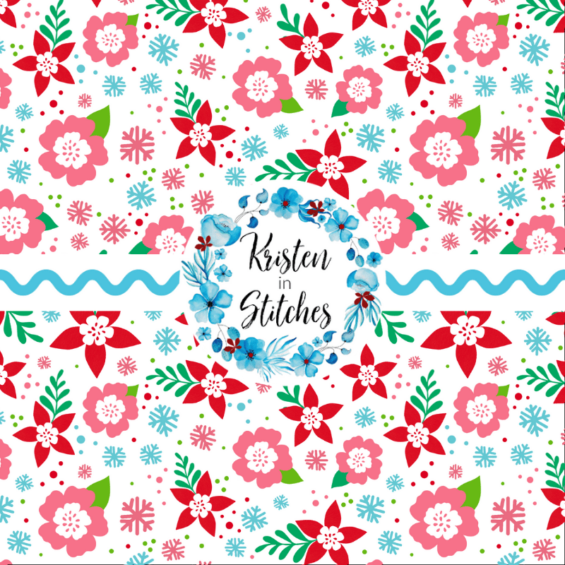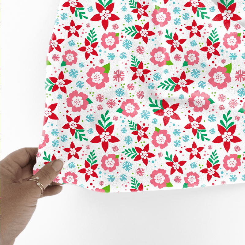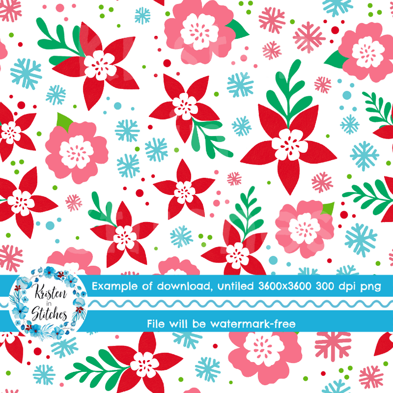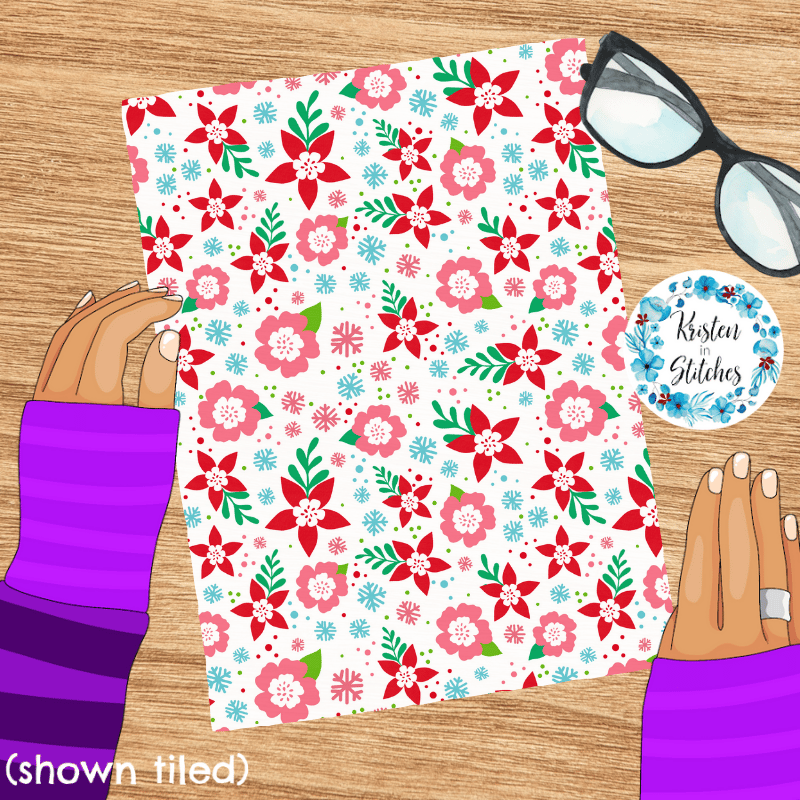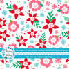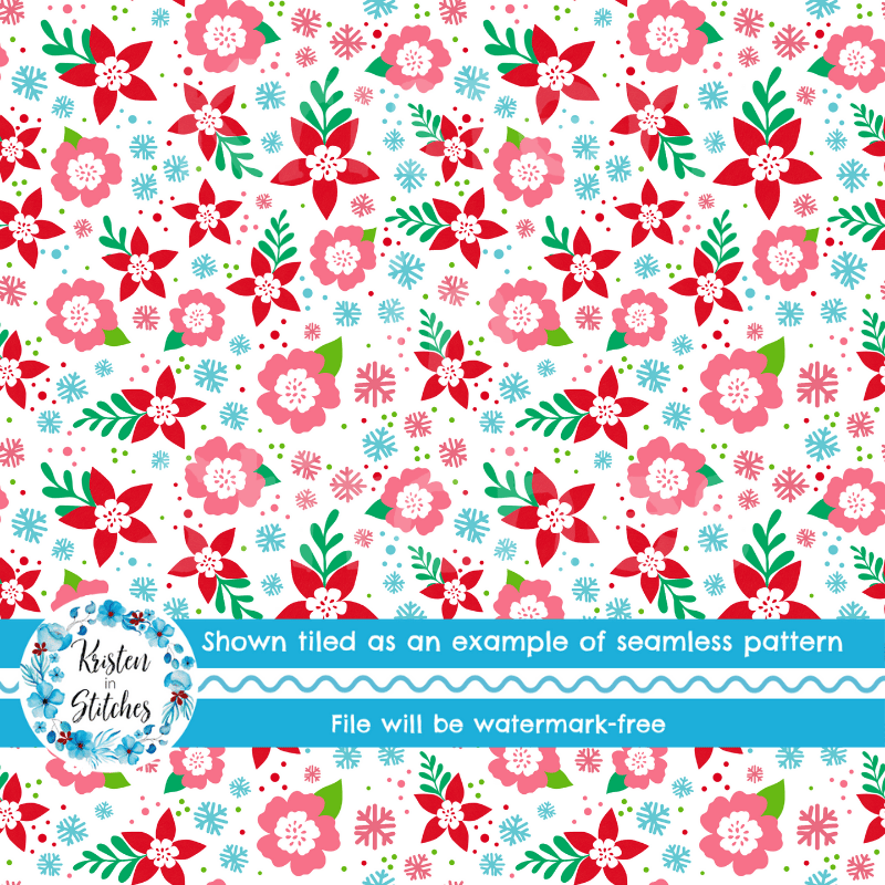 Festive Christmas Holiday Floral Seamless Pattern, Red and Pink Flowers