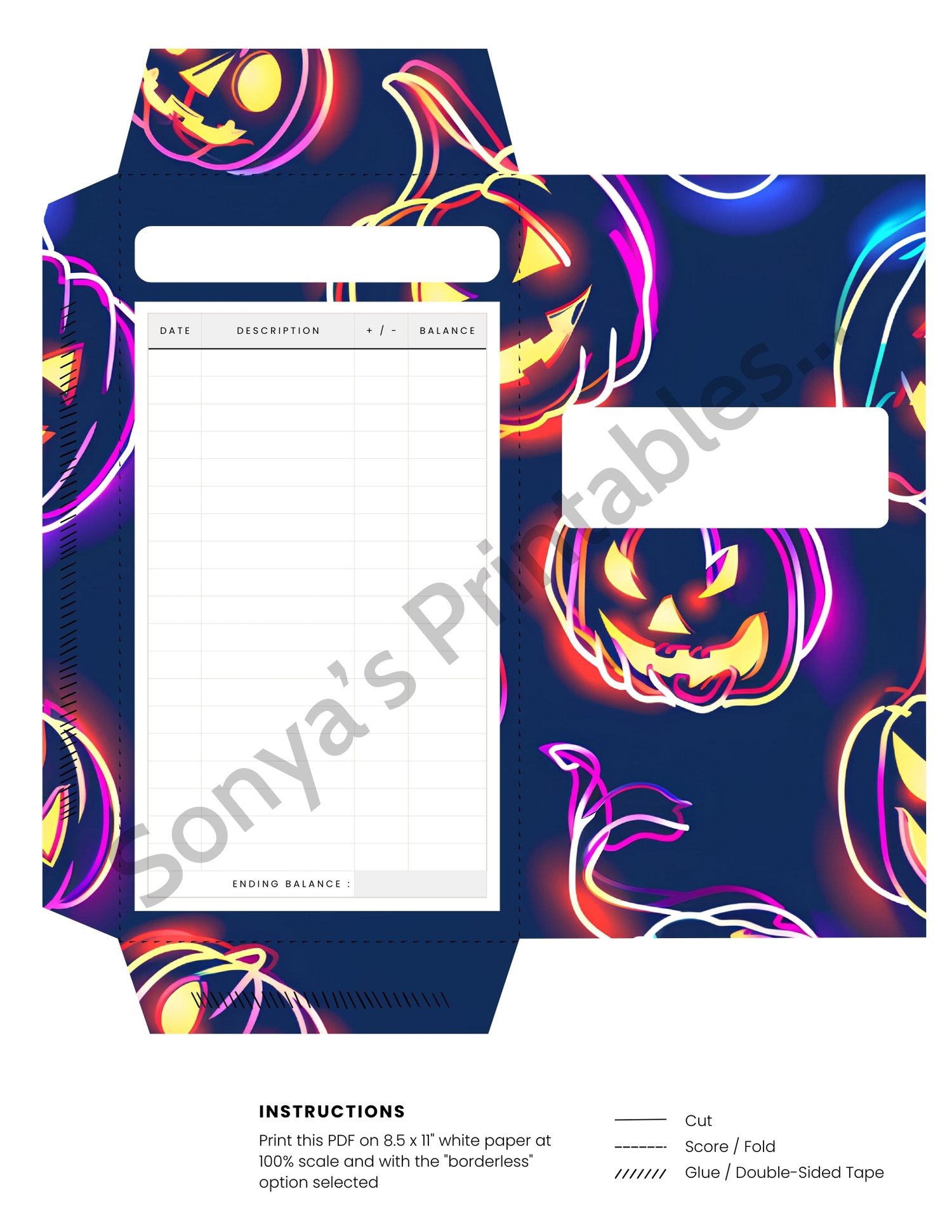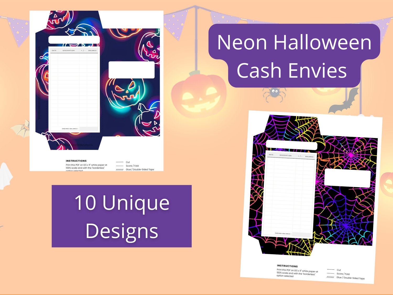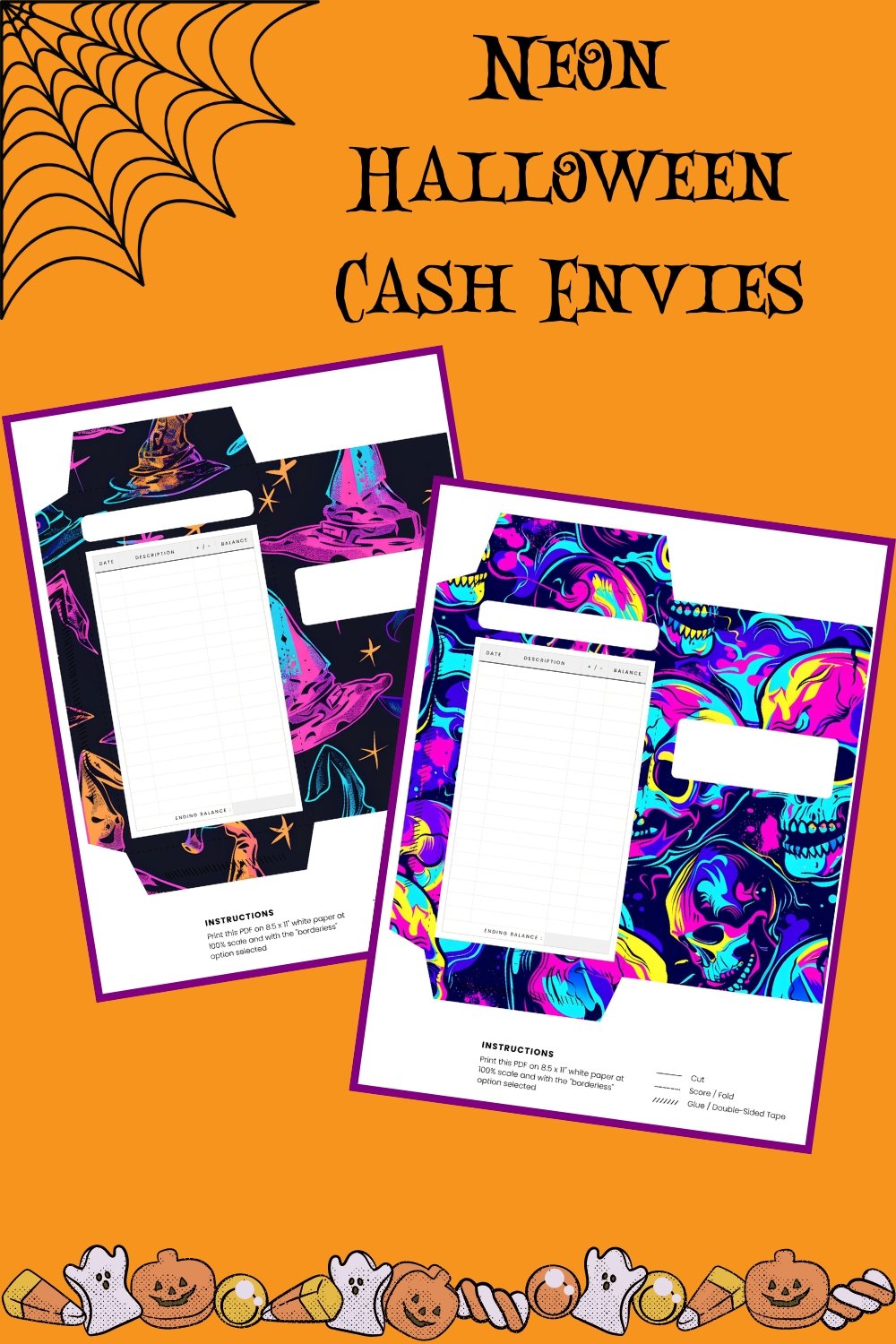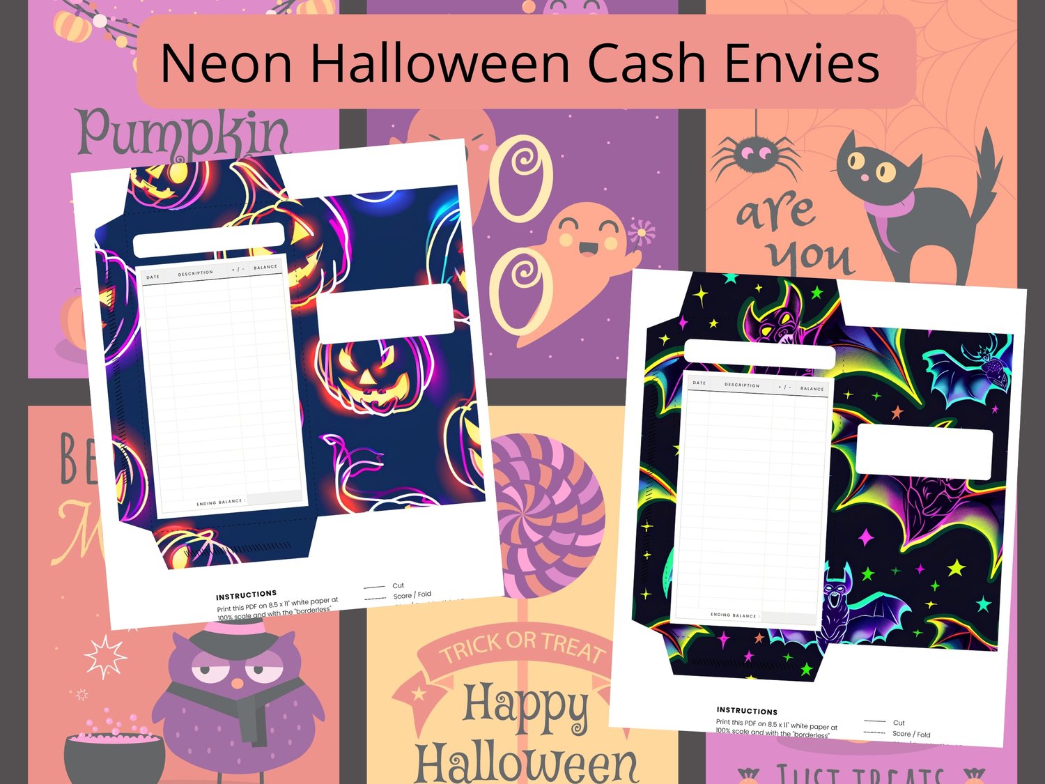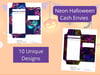 Neon Halloween Cash Envelopes With Budget Trackers | Neon Halloween Cash Envies With Expense Trackers | Halloween Cash Stuffing Logs