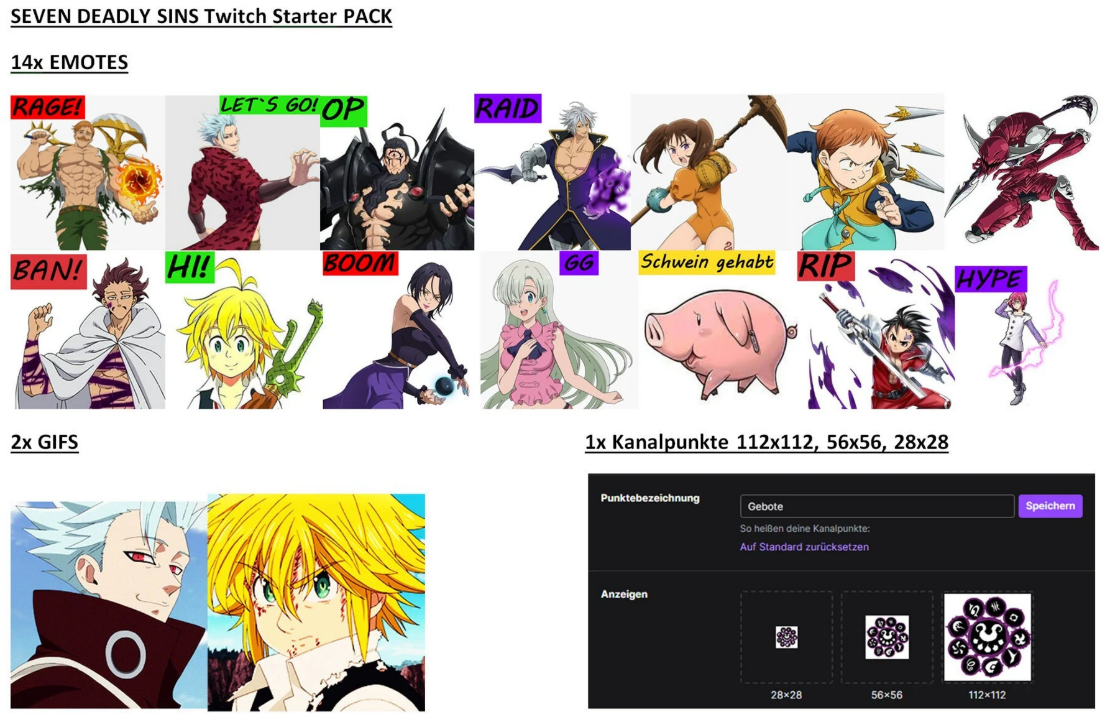 SEVEN DEADLY SINS Starter Twitch | Stream Overlay, Twitch animiert, Stream Paket animiert, Emotes, Tiktok Emotes, Twitch, channel points
