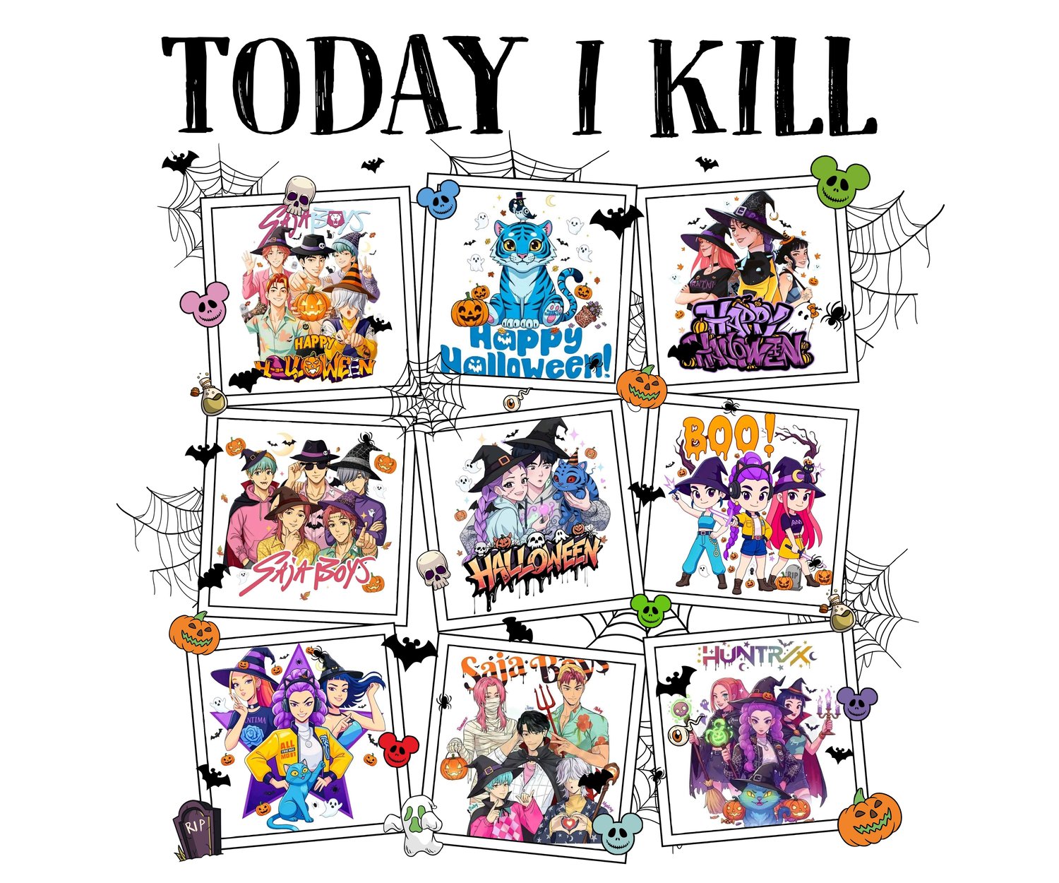 - Bold "TODAY I KILL" headline (Halloween themed).