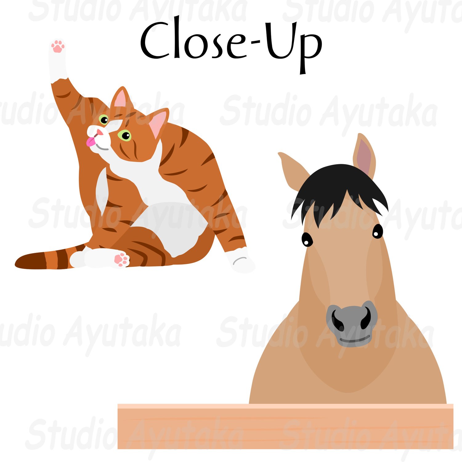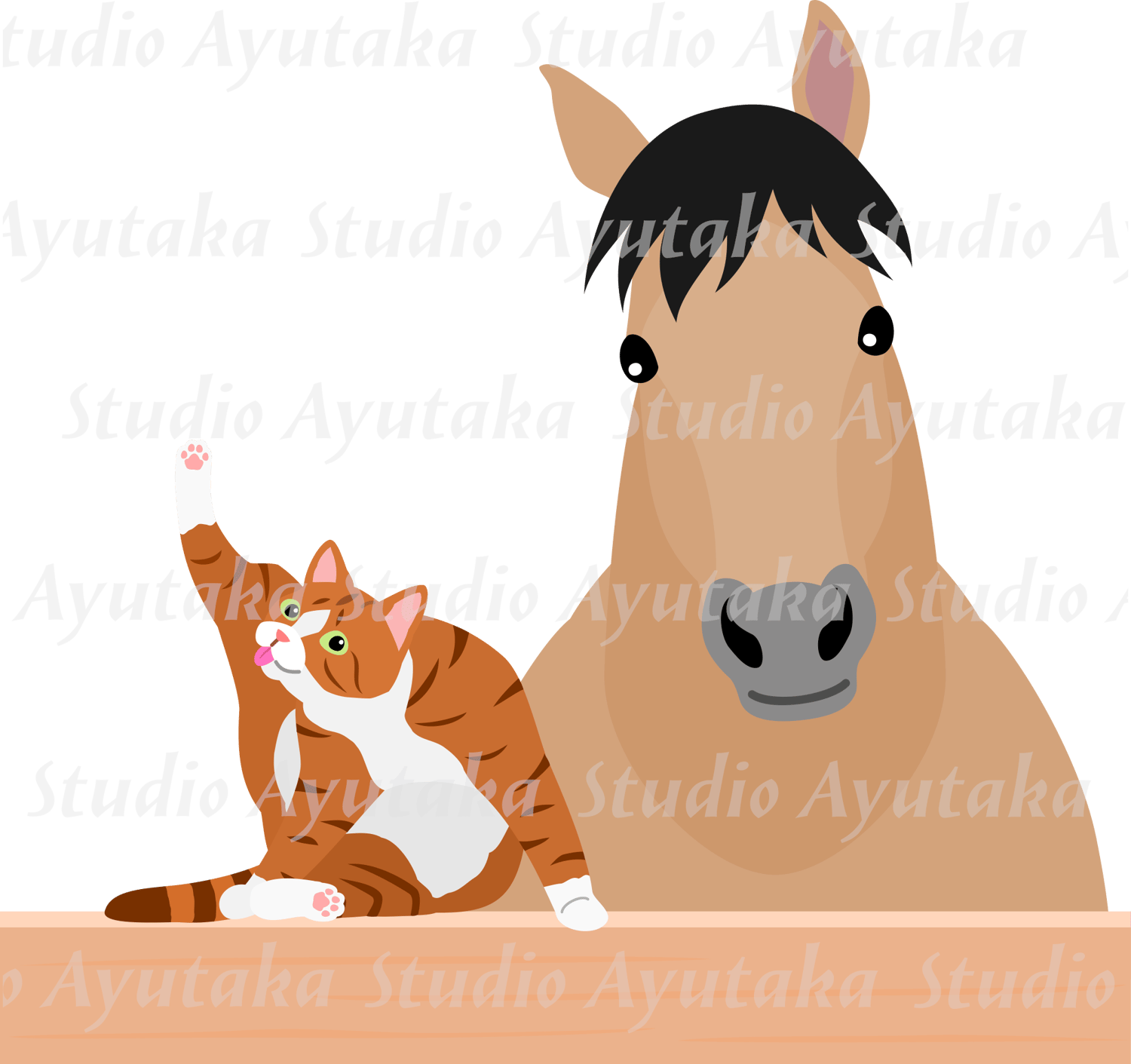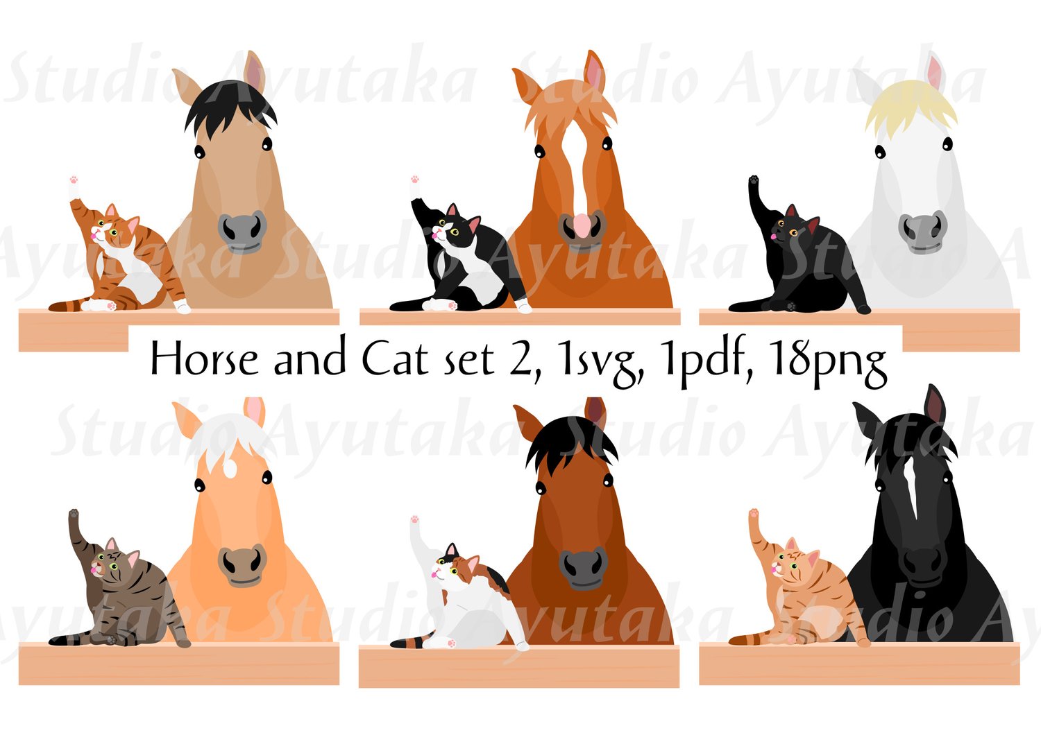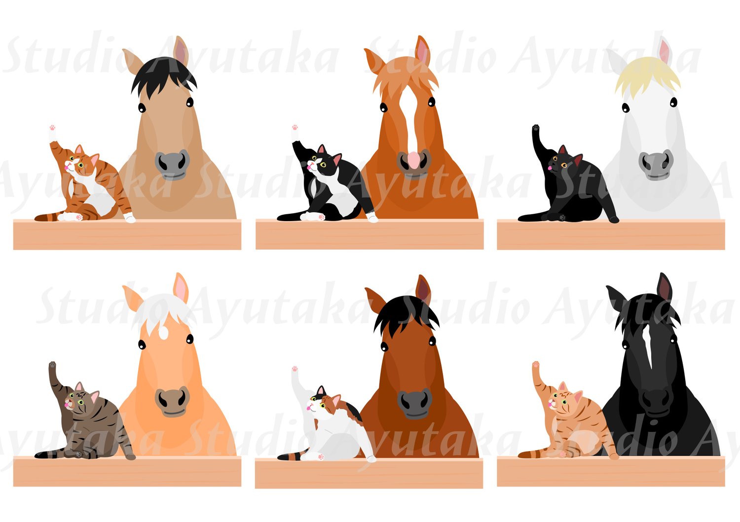 PNG×18(6 cats, 6 horses, 6 cat&horse pairs), 300dpi, RGBcolor, transparent back, longest side;