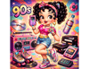 Step back in time with this Retro Decade Cartoon Girls PNG Bundle featuring fun vintage-inspired characters from the 1940s, 1950s, 1960s, 1970s, 1980s, and 1990s. Each design includes a playful polka-dot outfit and nostalgic elements from the era such as jukeboxes, vinyl records, disco lights, arcade games, and retro technology.