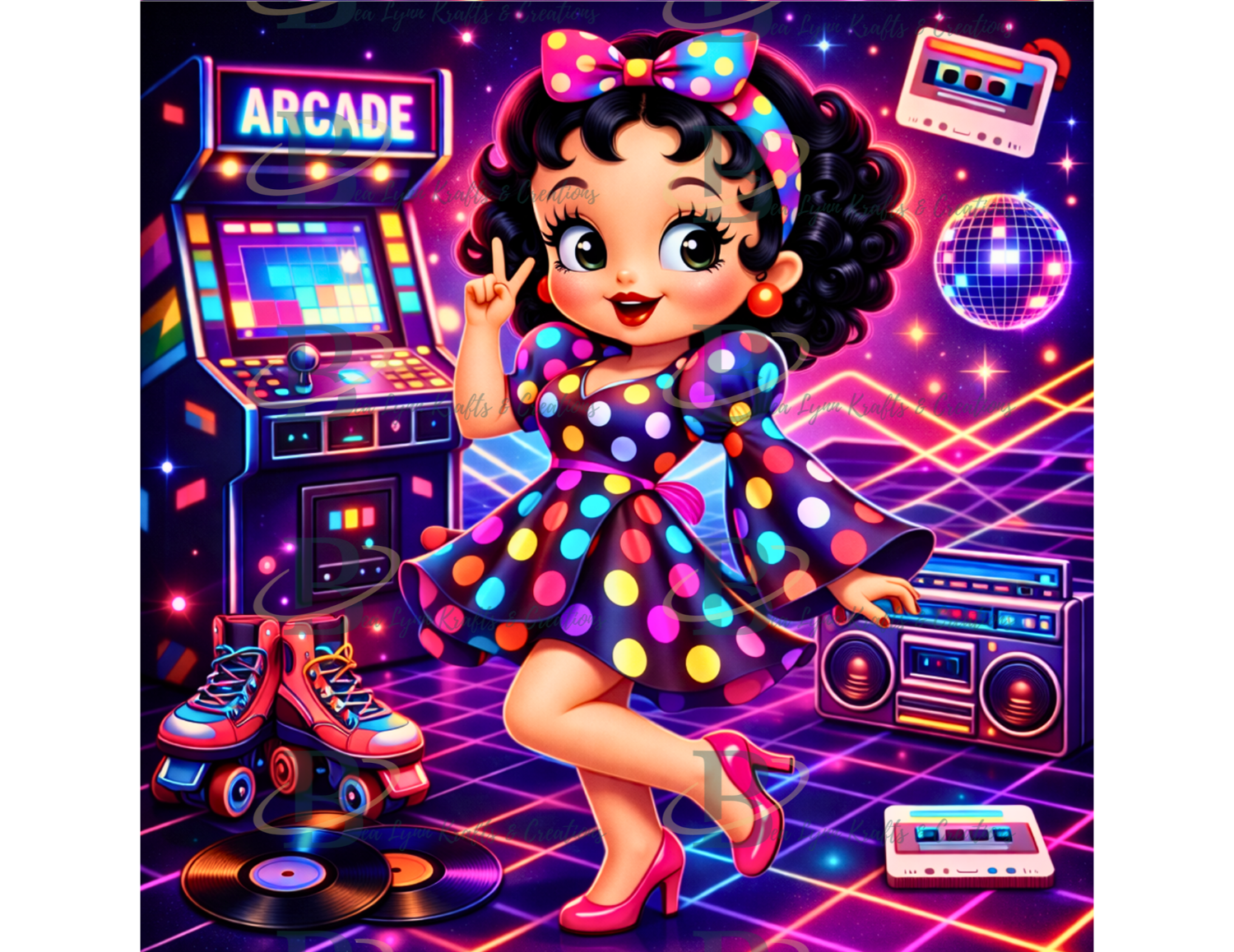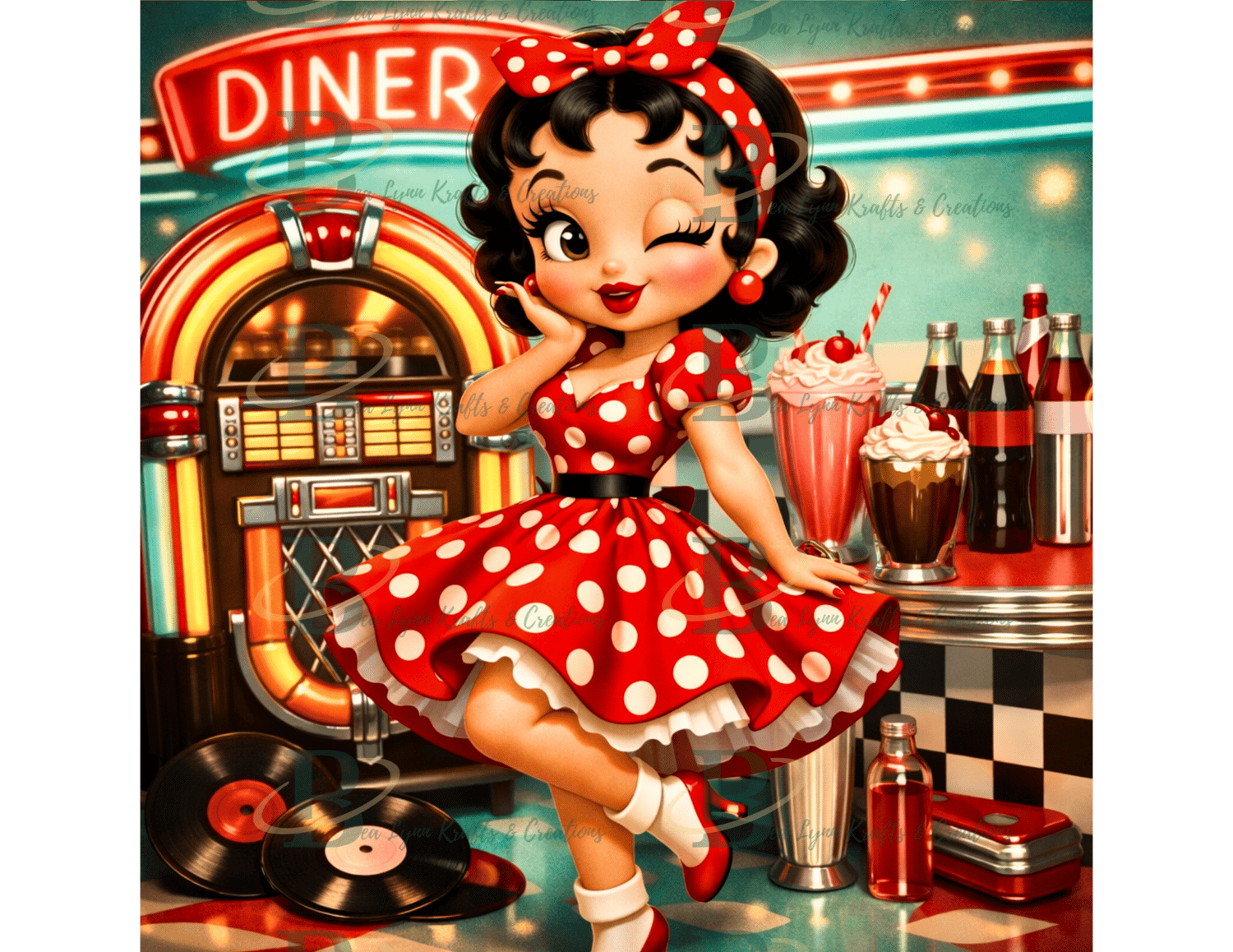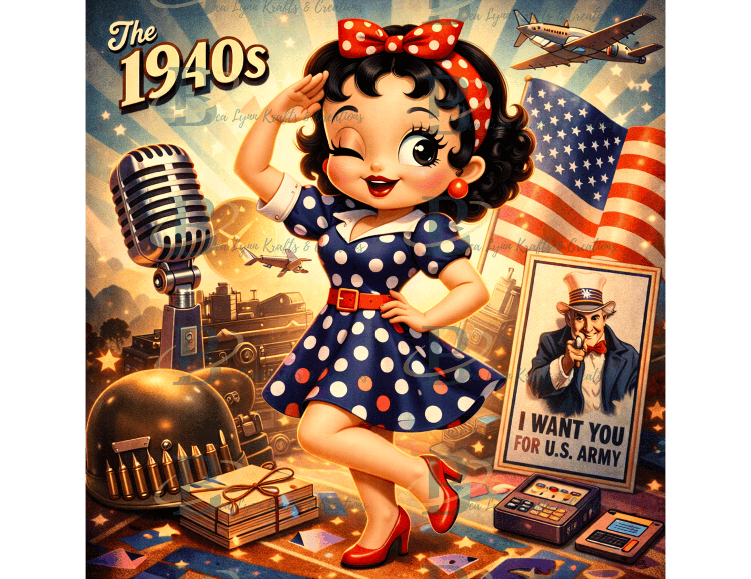 Retro Decade Cartoon Girls PNG Bundle | 1940s–1990s Vintage Polka Dot Pin-Up Collection | 6 PNG Designs
