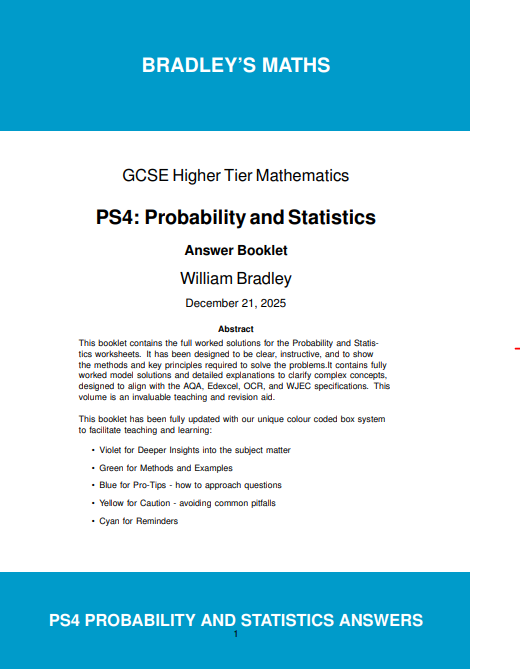 - The Worksheet Booklet: A complete course covering the whole of Probability and Statistics at this level.