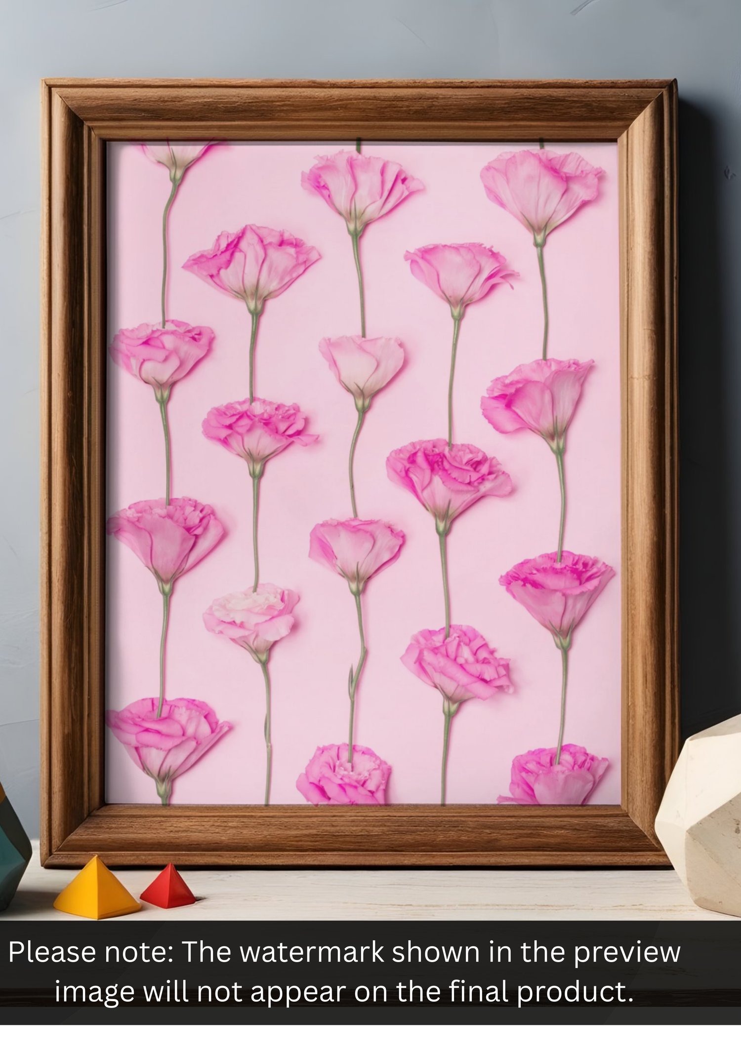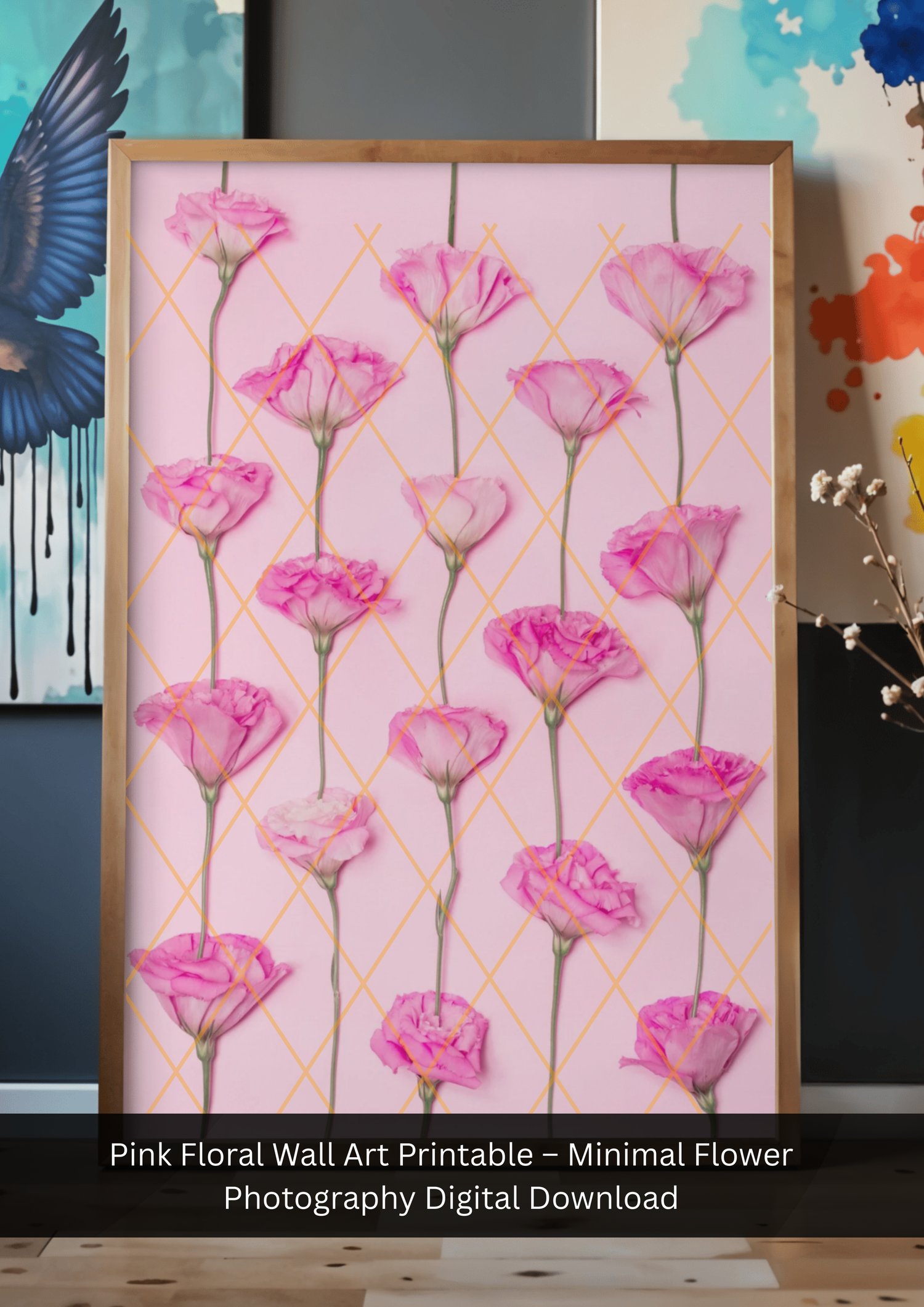 This high-resolution digital artwork features delicate pink flowers arranged in a clean, modern pattern—perfect for bedrooms, living rooms, offices, nurseries, or gallery walls.