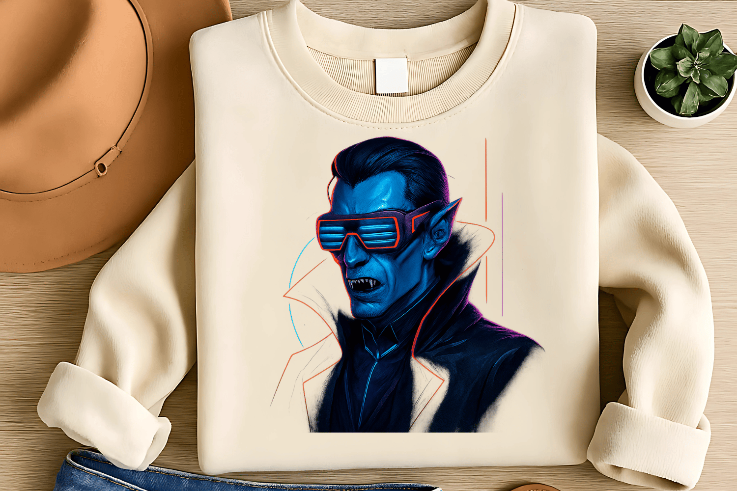 Cyberpunk Vampire Sublimation PNG – Futuristic Halloween Clipart for T-Shirts – Neon Fangs & Digital Night – 300 DPI Instant Digital Download