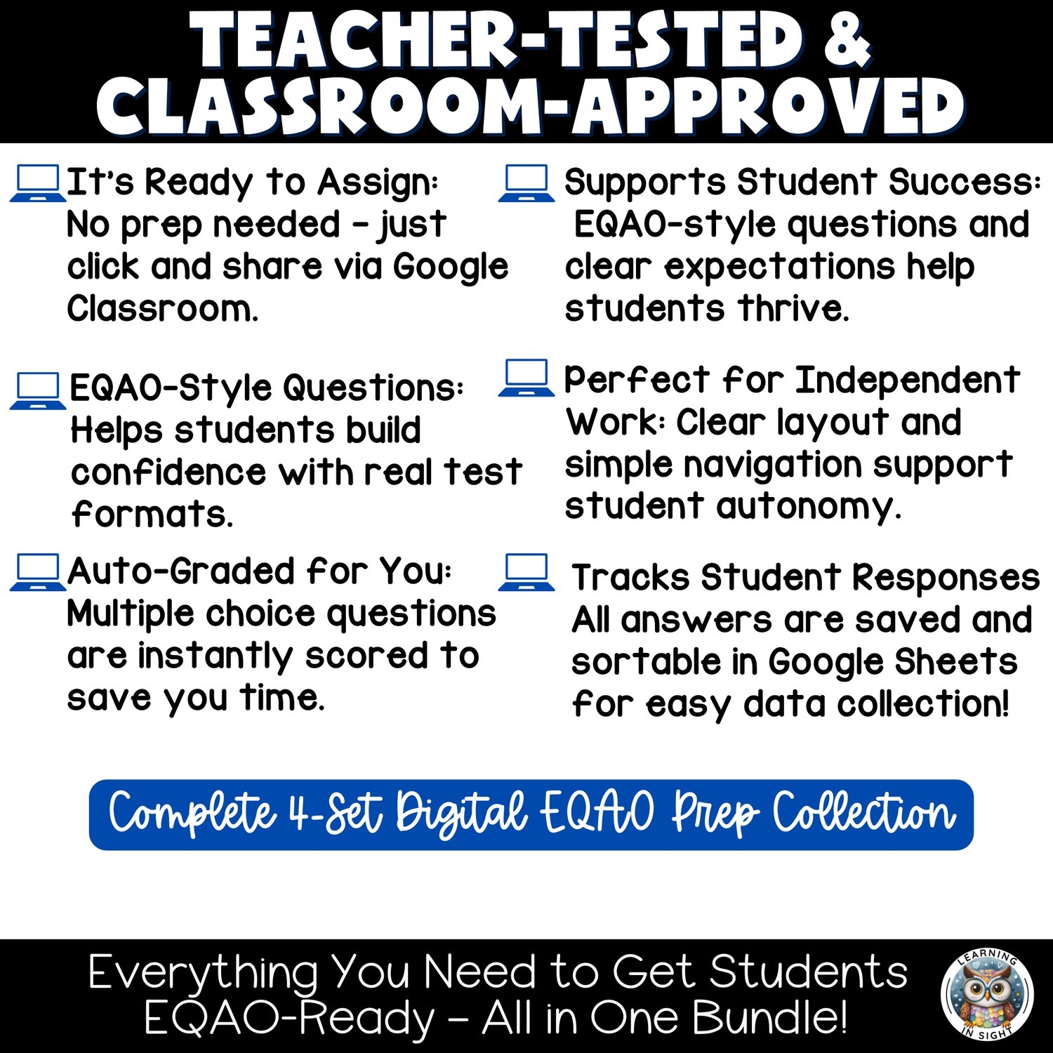 Add the complete bundle to your cart to save time and boost results. Get Sets A, B, and C now and start real EQAO practice.