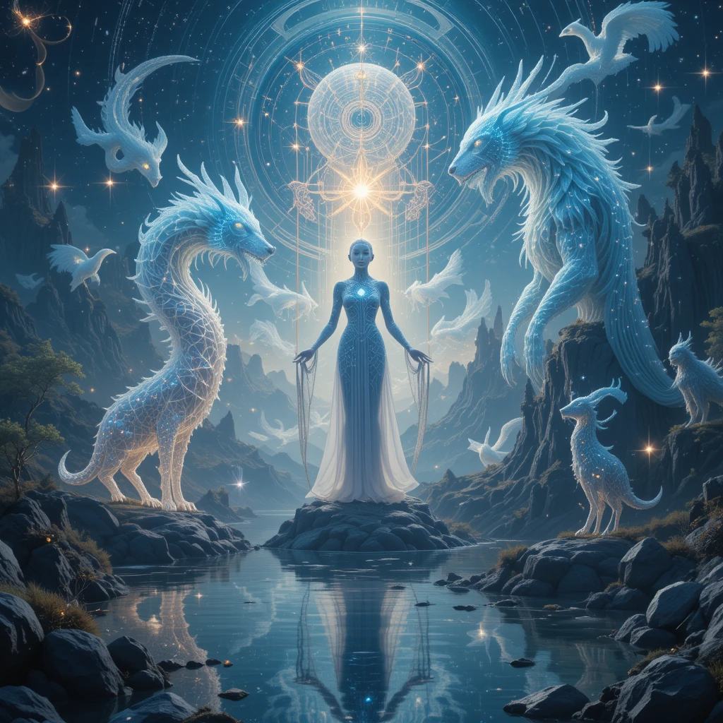 Real humans and animals interact with full awareness of cause and effect, gratitude flowing through eye contact, breath, and every subtle movement. Elephants roam tranquil plains, people walk in balanced cities, and nature responds with shimmering energy to each intentional act. This piece invites you to imagine what Earth could be if every living being acted with reverence.