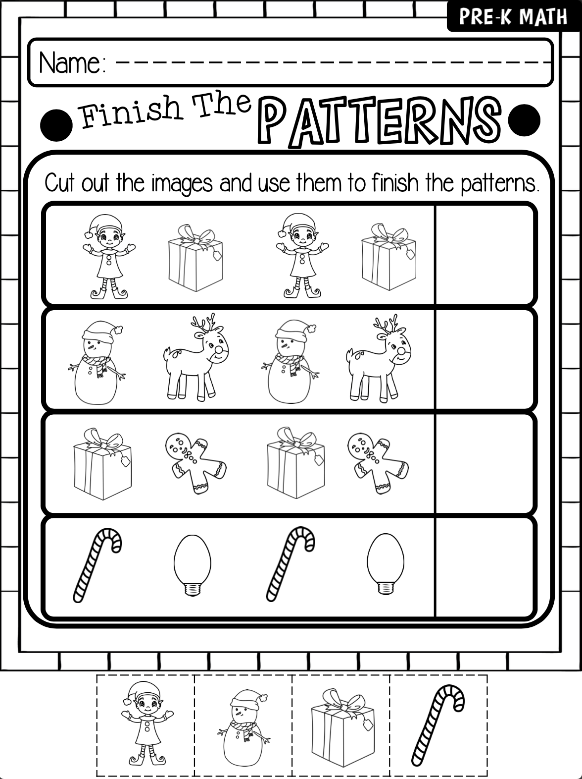 Shapes & Patterns – Identifying, tracing, and creating patterns with numbers and colors.