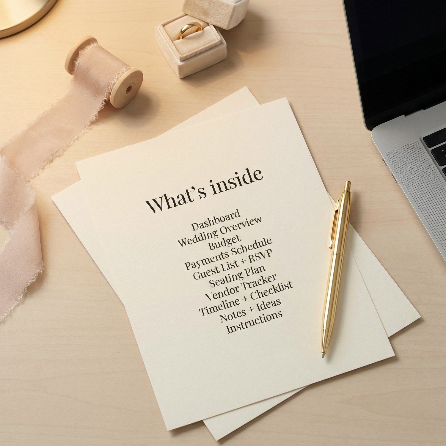 This All-In-One Wedding Planner Spreadsheet is a premium command center designed to keep every moving piece of your wedding organized—without messy notebooks or scattered apps.