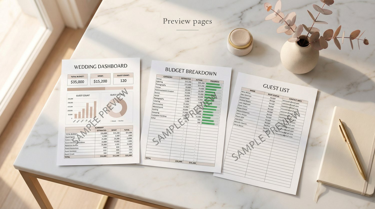 All-in-one Wedding Planner Spreadsheet for Excel + Google Sheets: Editable