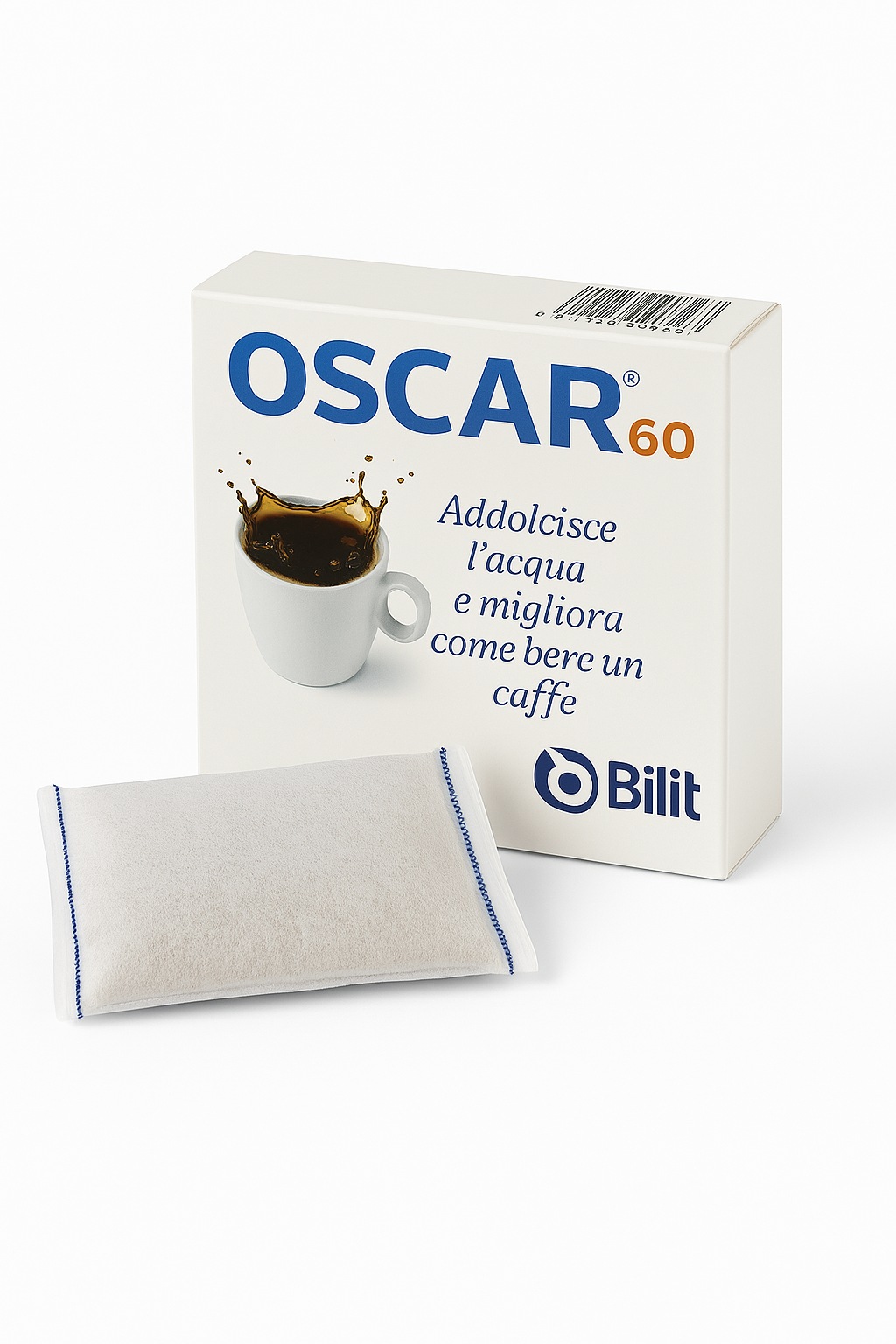 I sacchetti addolcitori Oscar 60 sono studiati per migliorare la qualità dell’acqua nei serbatoi delle macchine da caffè di piccole dimensioni, riducendo la formazione di calcare e contribuendo a mantenere le prestazioni ottimali dell’apparecchio.