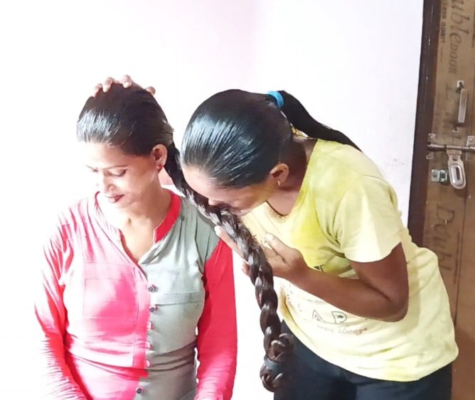 Hair Smelling Madness Sapna and Shital Longhair Sniffing and Oiling Hair