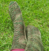 The first in the Fairies in Literature collection, the Oberon socks are inspired by the imagery of Oberon with stag horns and by his personality: powerful but also tricky and manipulative. The yarn from Eternity Ranch Knits is inspired by the forest. They feature a simple horn cable down the front of the sock, and lots of smooth stocking stitch to let your yarn shine.