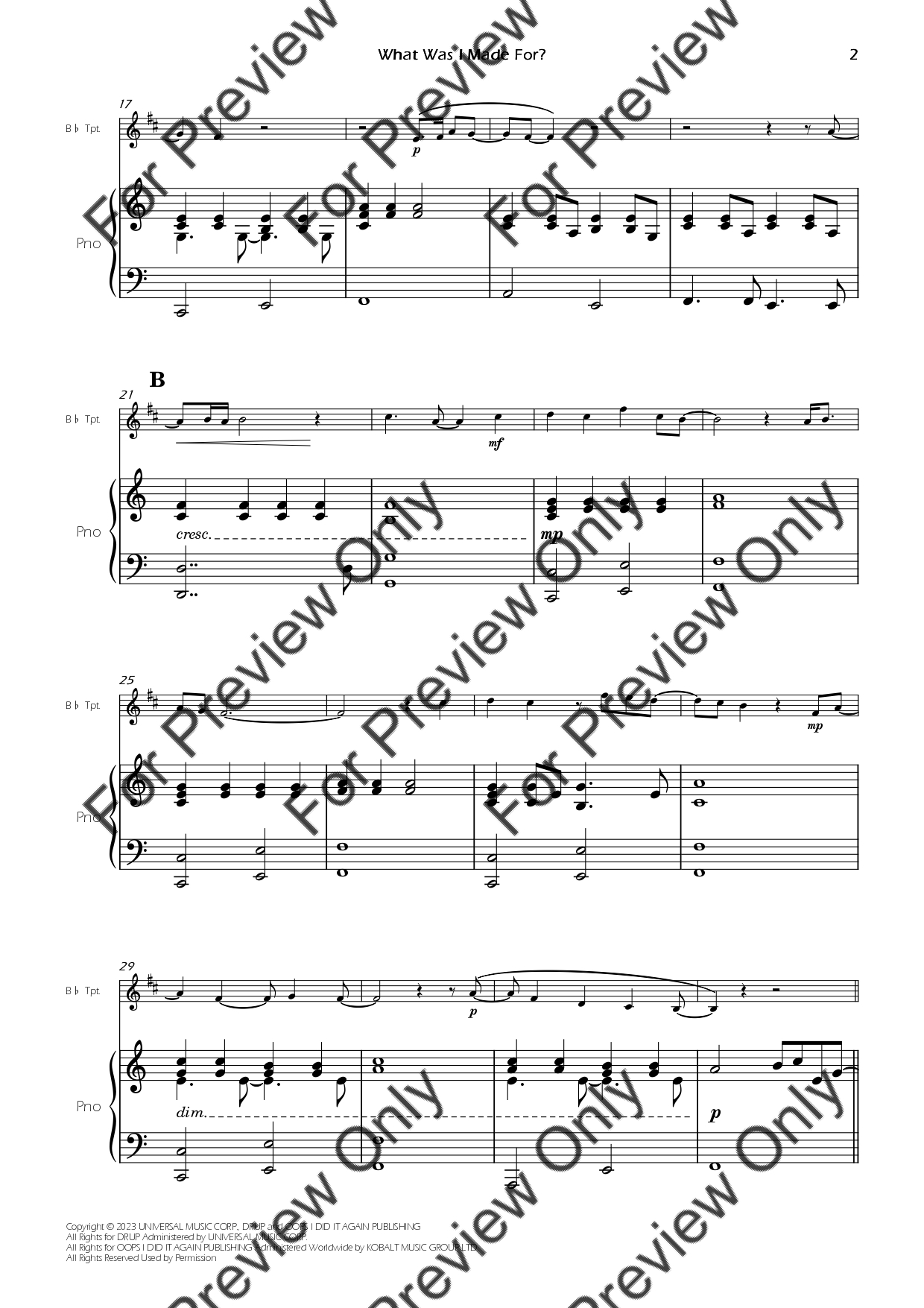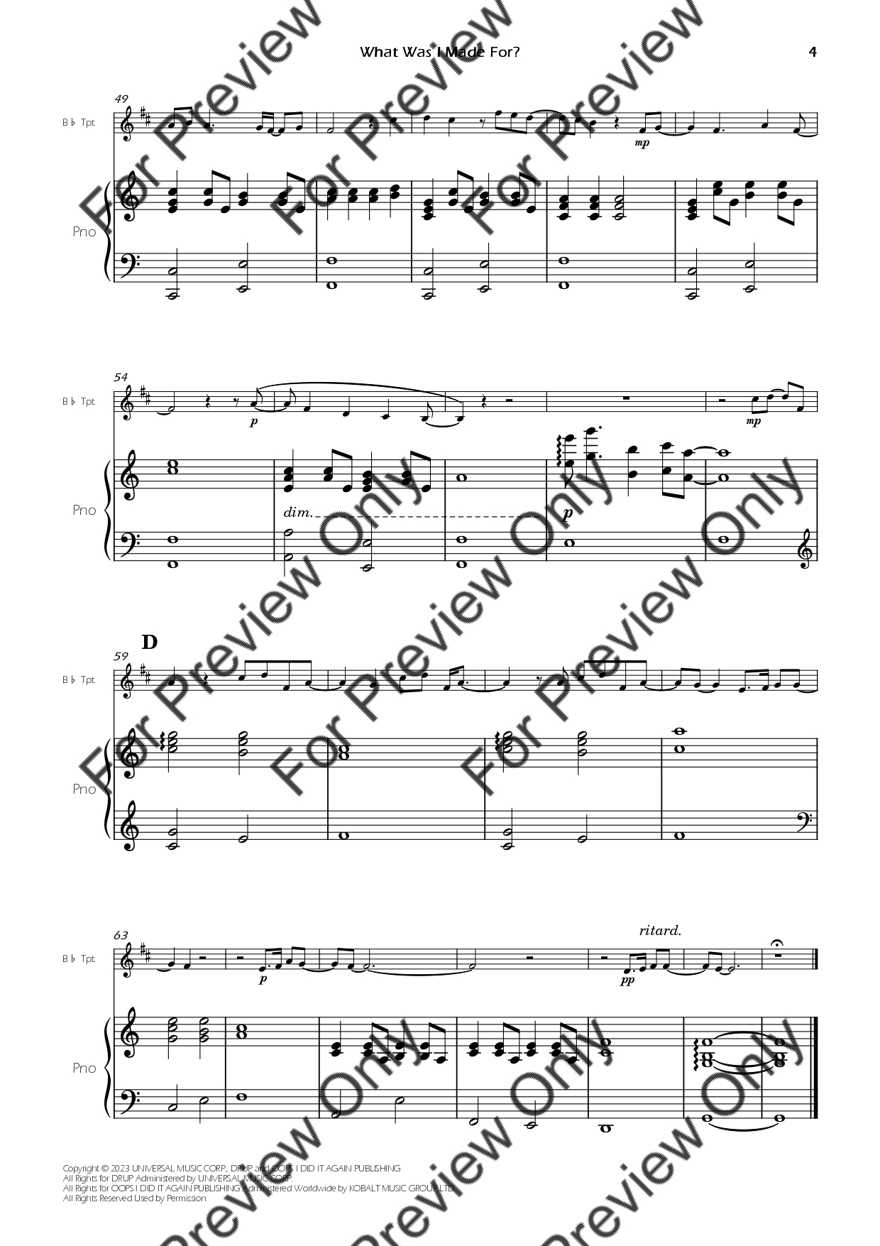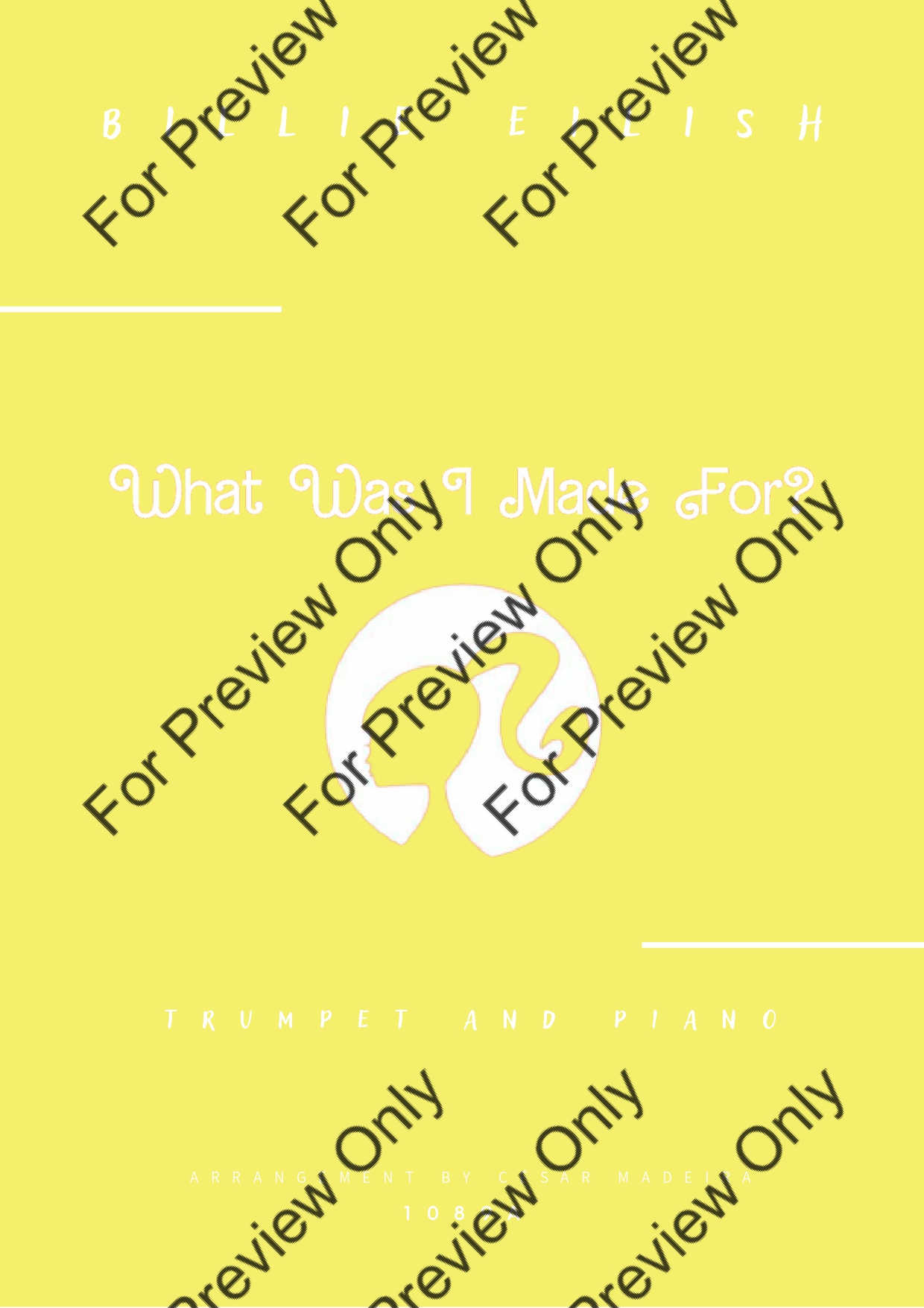 What Was I Made For? by Billie Eilish from Barbie Girl. Arrangement for Bb Trumpet and Piano. With Full Score and Individual Parts. Have fun!