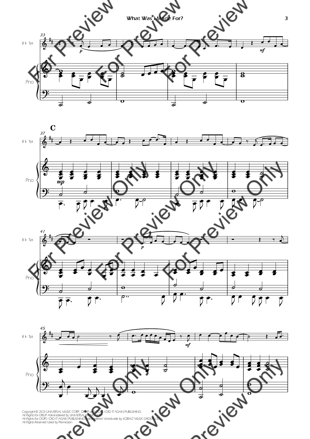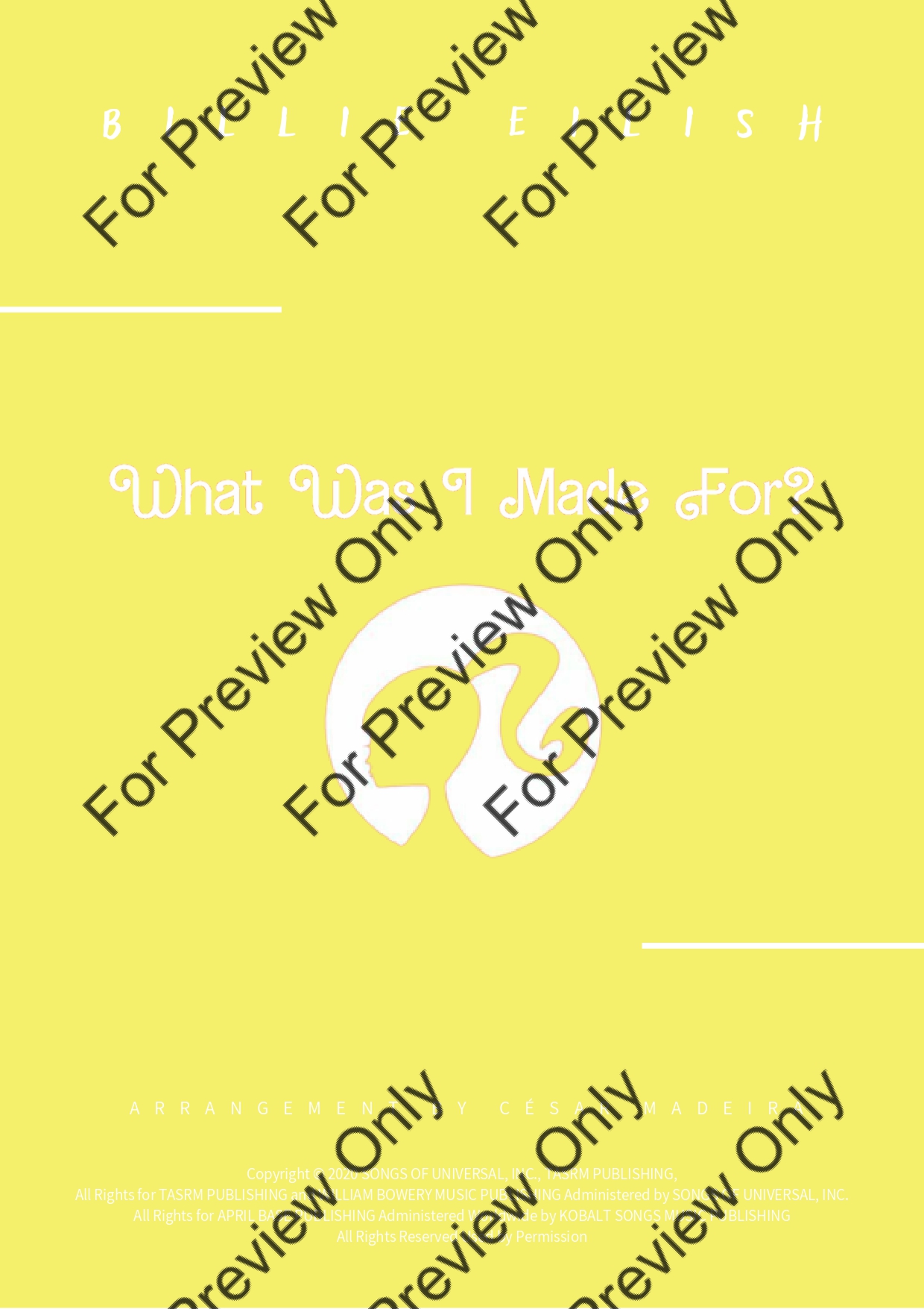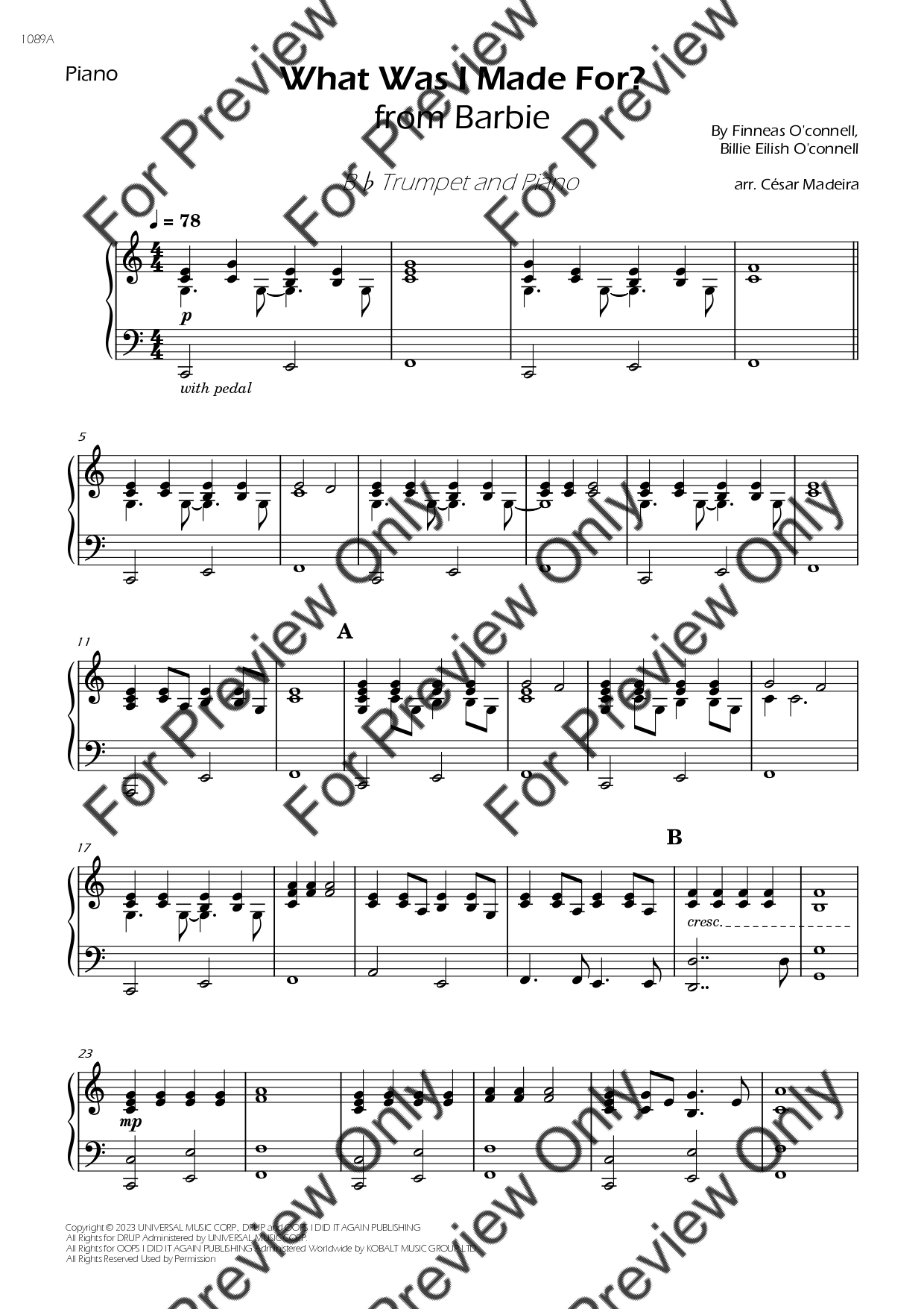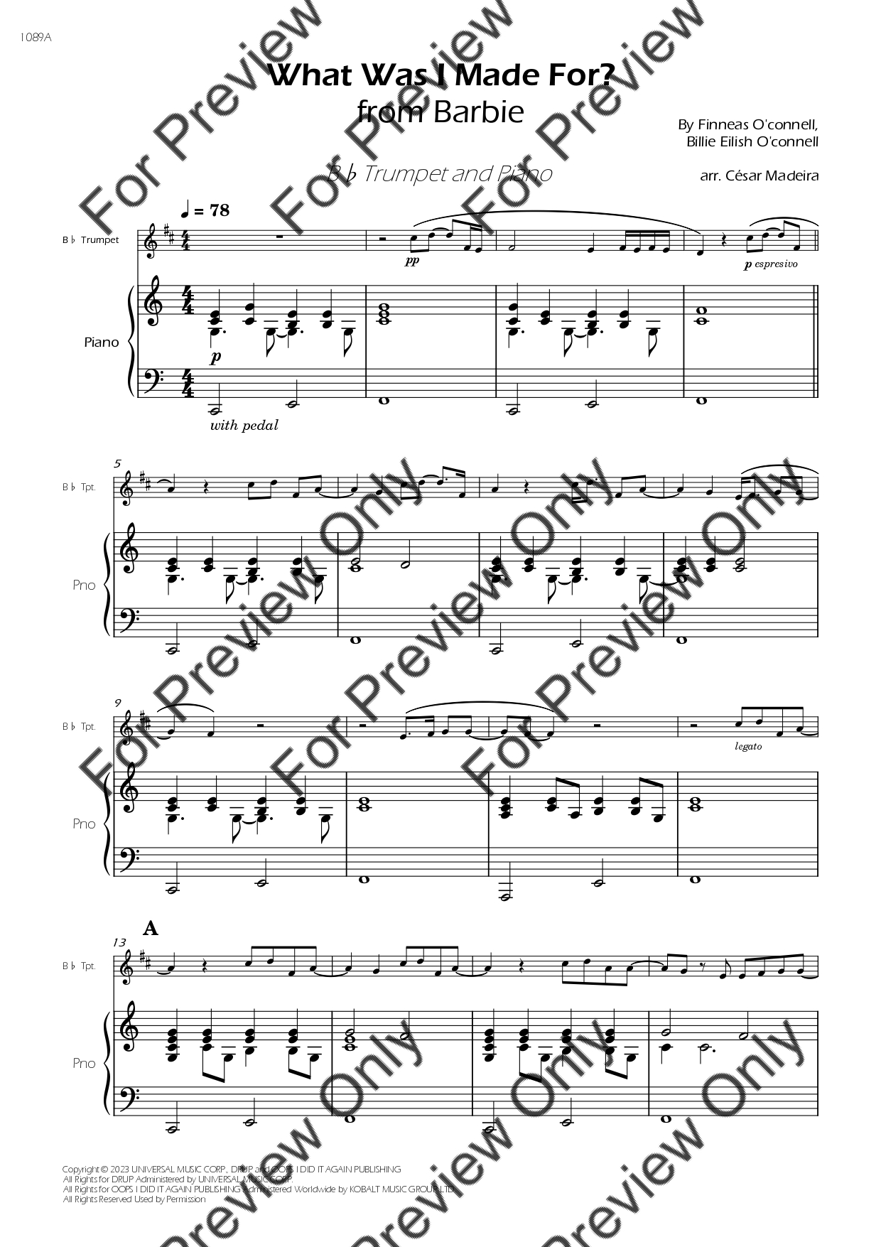 What Was I Made For? by Billie Eilish from Barbie Girl. Arrangement for Bb Trumpet and Piano. With Full Score and Individual Parts. Have fun!
