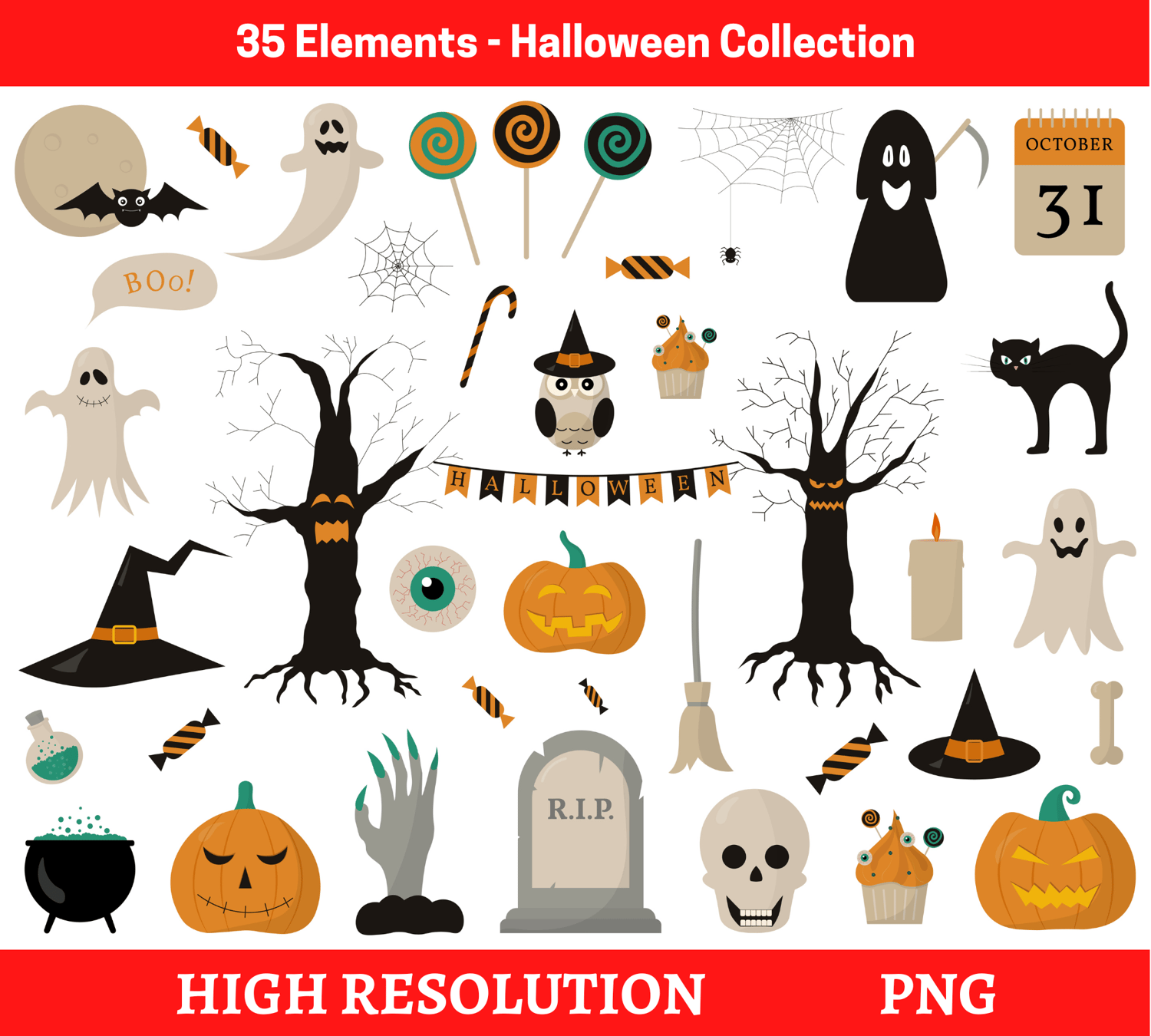 35 Elements - Halloween Collection, hi-res digital CLIP ART (with transparent background).