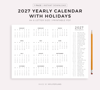 This is a printable 2027 year calendar with holidays on one page — just download, print, and start using it right away.