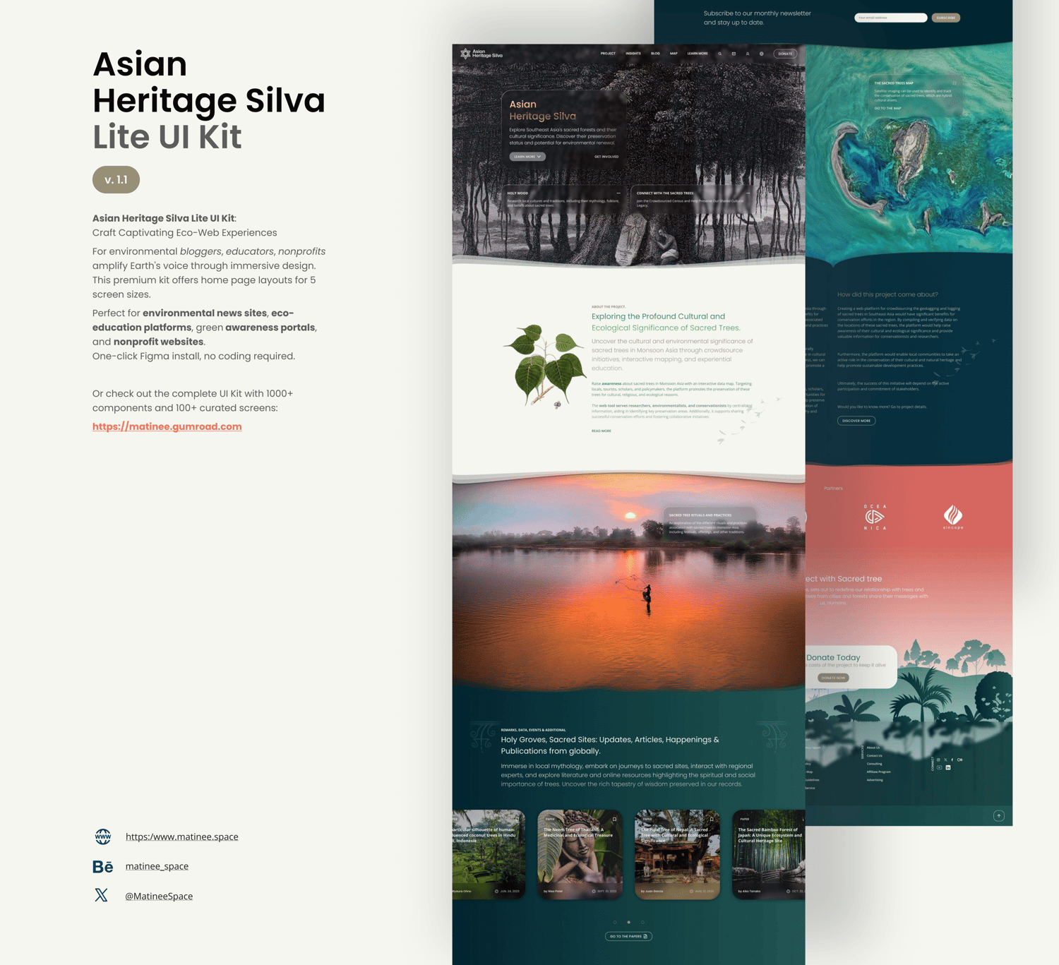 Ready to harmonize your digital experiences with nature? The Asian Heritage Silva Figma template will empower you to craft platforms that don't just describe our planet's challenges, but shape solutions.