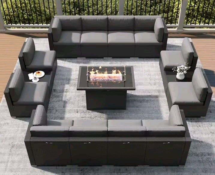 Customizable Modular Design: With 12 independent seating sections and 2 coffee tables, you can create one massive U-shaped lounge, separate conversation nooks, or a long poolside sectional.