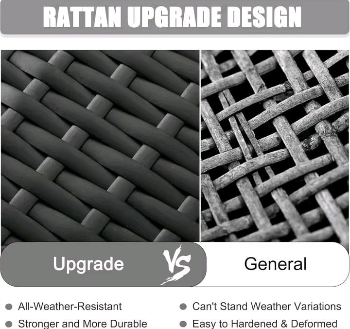 All-Weather Construction: Hand-woven, UV-resistant PE rattan is wrapped over a rust-resistant powder-coated steel frame, ensuring your set stays beautiful through every season.