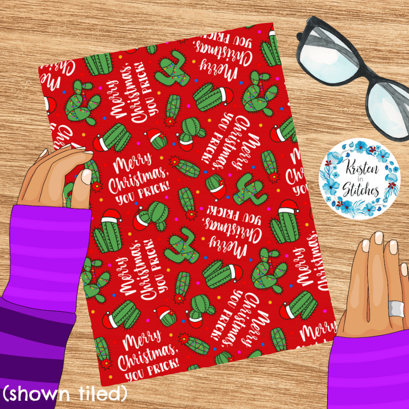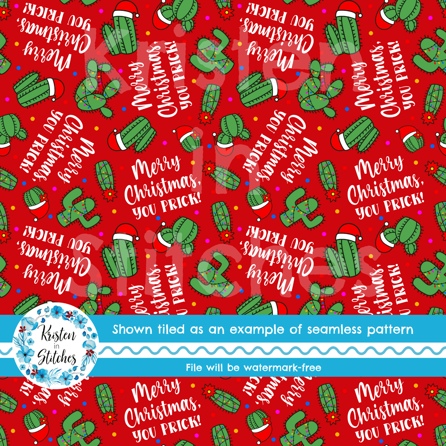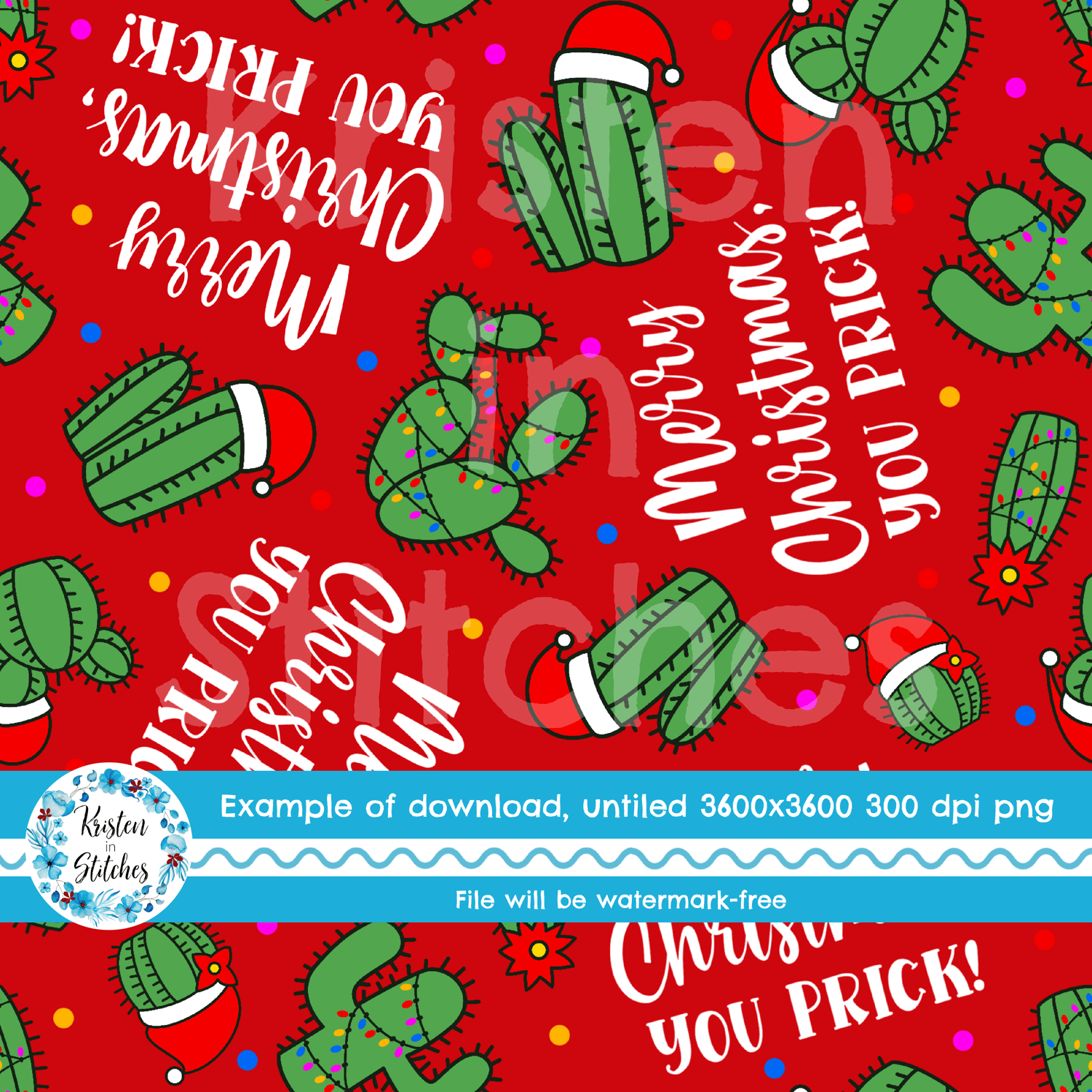 Merry Christmas, You Prick! Seamless Pattern Green Cactus Santa Hats