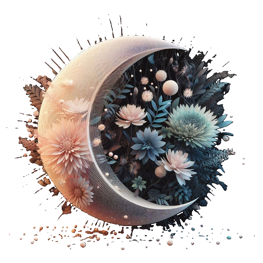 Beautiful half-moon with floral art. This would look great on any black t-shirt or any other product. Or just as printable wall art. It's a large downloadable 4000 x 4000 pixel PNG file.