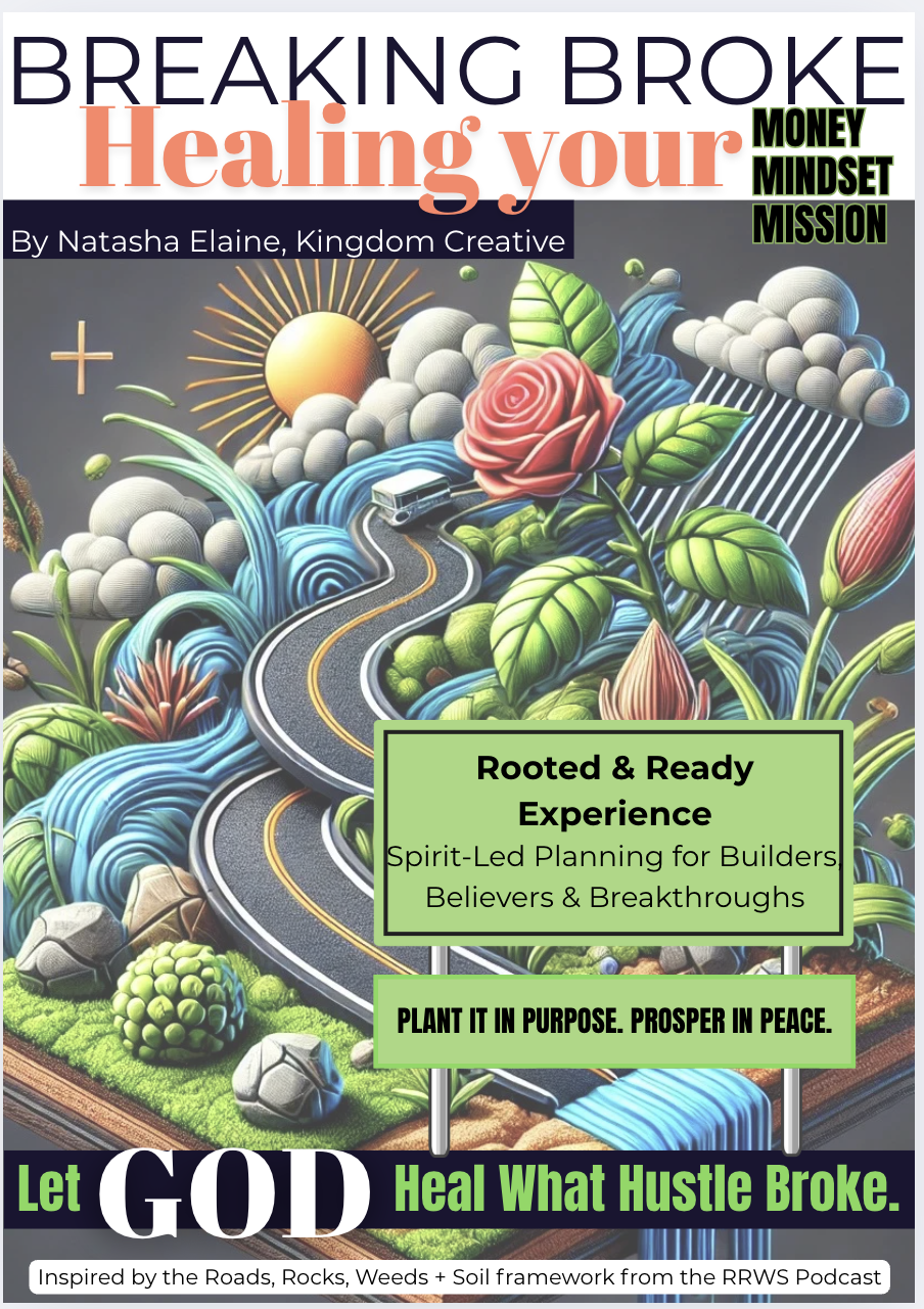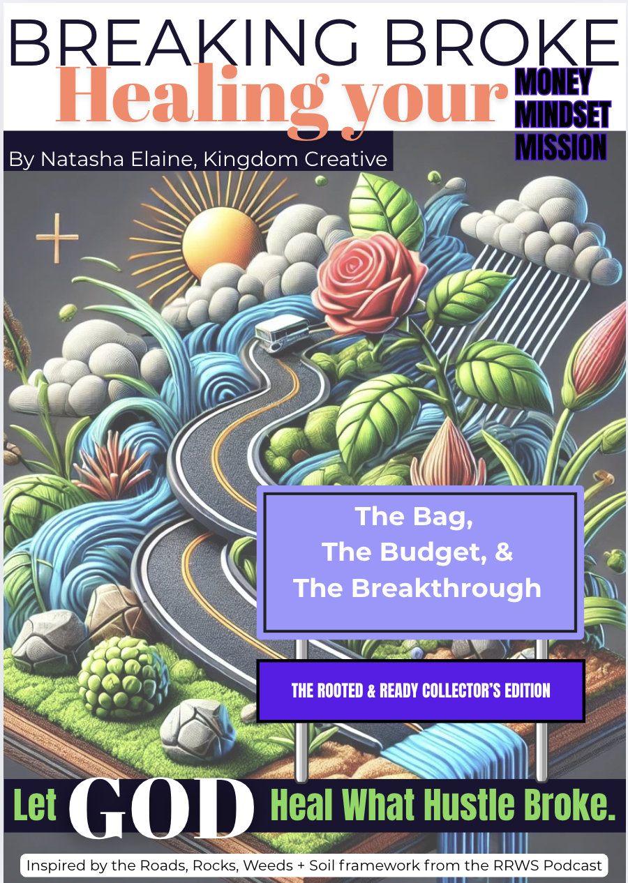 The Rooted & Ready VIP Suite is the complete Breaking Broke journey: an 80+page collector’s edition workbook with devotionals, worksheets, audio resets, and exclusive coaching support. Move from financial fear to Spirit-led clarity, confidence, and steady action, so you can begin earning income from your Kingdom assignment with peace, purpose, and provision.
