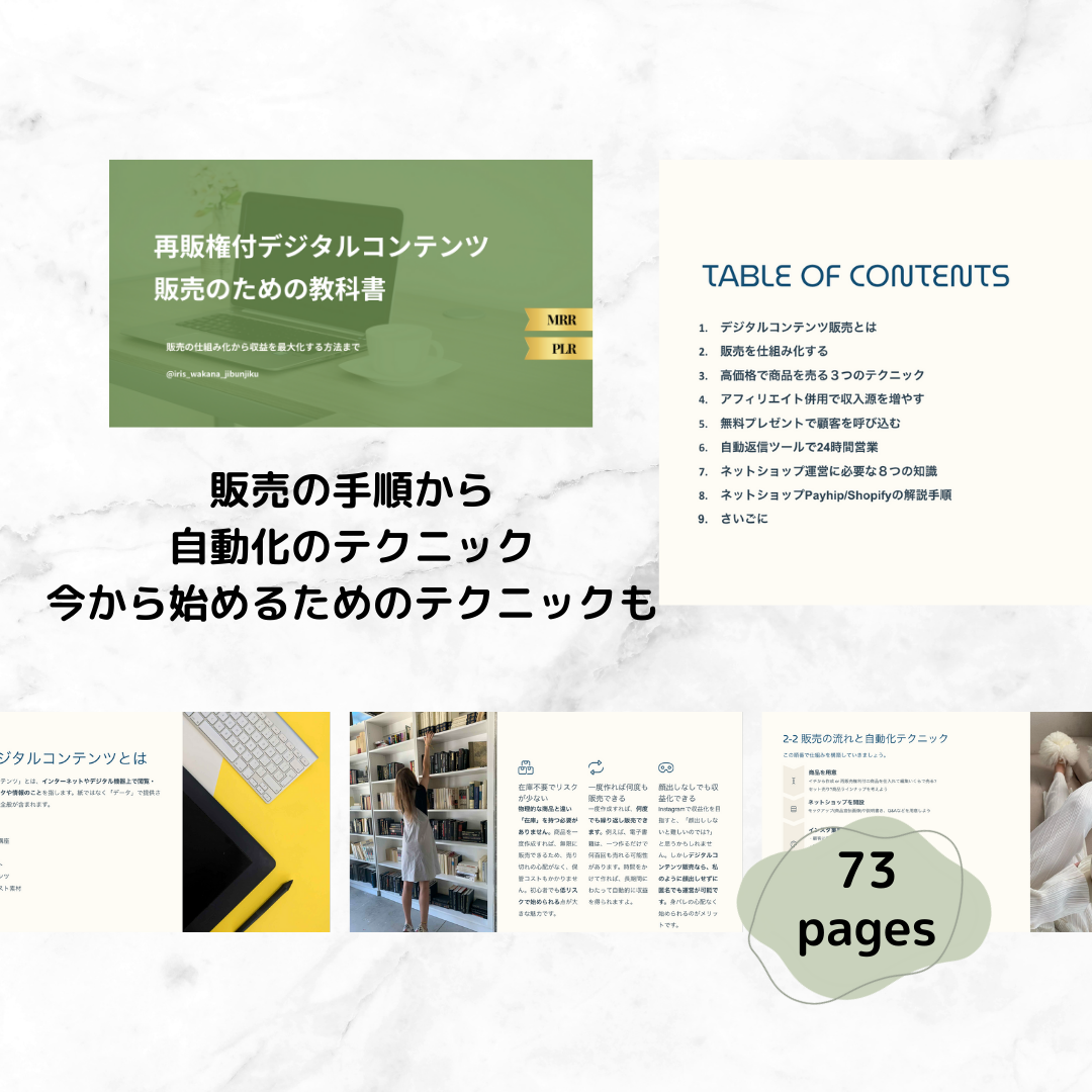 ⚫︎この商品を基に必要があれば編集して販売が出来るので、ゼロから商品を作るのが大変な方におすすめです。書籍から学んだ後にそれをご自分の商品として販売できるので知識としての自己投資だけでなく商品をすぐに持てる近道になります。